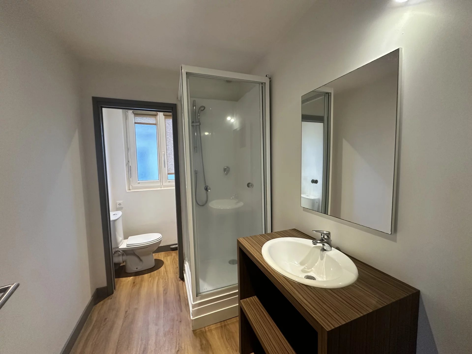 Appartement rénové exposé Sud-Ouest, au 1er Etage d'une petite copropriété, , comprenant deux chambres, salle d'eau avec toilettes, une pièce de vie lumineuse avec cuisine aménagée ouverte. Faibles charges, proches commodités