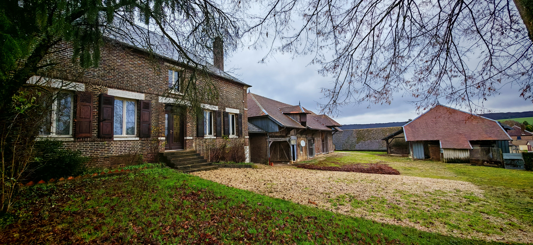 Opportunité rare : ensemble composé d'une maison de 218 m2 à rénover, d'une grange de 244 m2, d'une seconde grange de 70 m2, le tout sur 9 439 m2 de terrain.