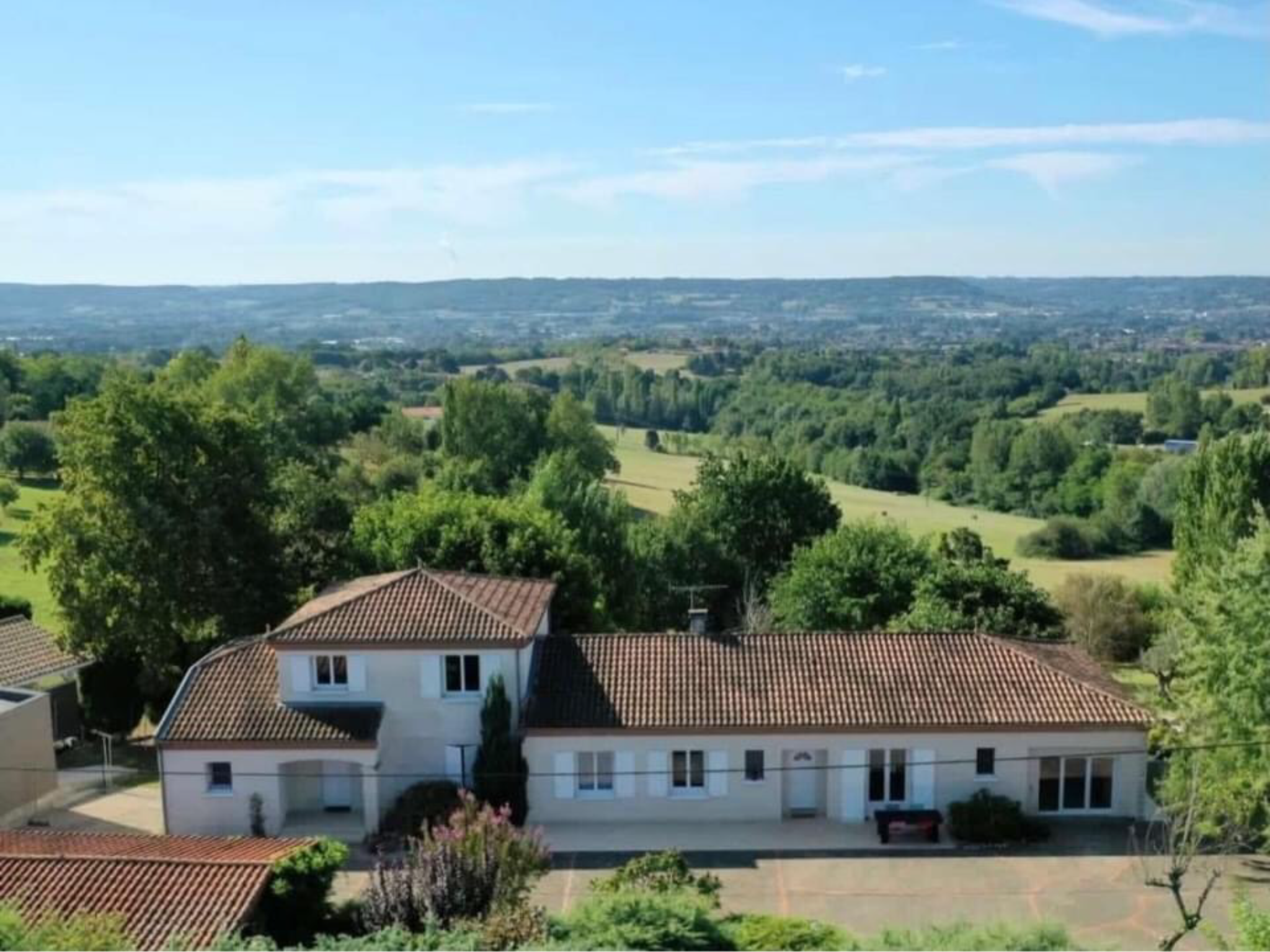 Située dans l'un des secteurs les plus prisés de Villeneuve-sur-Lot, cette propriété rare propose deux villas attenantes, chacune avec son propre accès indépendant, implantées sur un magnifique terrain arboré de 4 927 m2 avec piscine et vues dégagées. Idéal famille, activité professionnelle, gîtes, ou projet locatif. Villa no1 Plain-pied entièrement restauré en 2019 Rénovée avec goût et matériaux de qualité, elle offre un confort de vie optimal : Entrée avec placard Grande pièce à vivre lumineuse de 32 m2 avec insert et accès terrasse Cuisine 3 chambres Salle d'eau Cellier / buanderie WC indépendant Véranda ouvrant sur le jardin Confort : chauffage électrique. Villa no2 Maison fonctionnelle avec climatisation réversible Rez-de-chaussée : Entrée avec placard Pièce de vie d'environ 39 m2 avec cuisine ouverte et climatisation réversible 1 chambre WC Débarras Étage : 2 chambres Bureau Salle de bains complète : baignoire + douche + WC Confort : chauffage électrique + climatisation réversible au RDC. Prestations remarquables & équipements complémentaires Cave Isolation des combles et des caves (2019) Piscine au chlore 13,5 x 8,5 m avec alarme Mare Grand parking en enrobé Carport d'environ 57 m2 Deux maisons sous vide sanitaire Un seul compteur d'eau et d'électricité pour les deux villas Toitures entretenues Atouts majeurs Quartier prisé, calme et recherché Vue dégagée Deux accès indépendants, idéal pour activité ou location Environnement paisible à proximité immédiate des commodités Les informations sur les risques auxquels ce bien est exposé sont disponibles sur le site Géorisques.