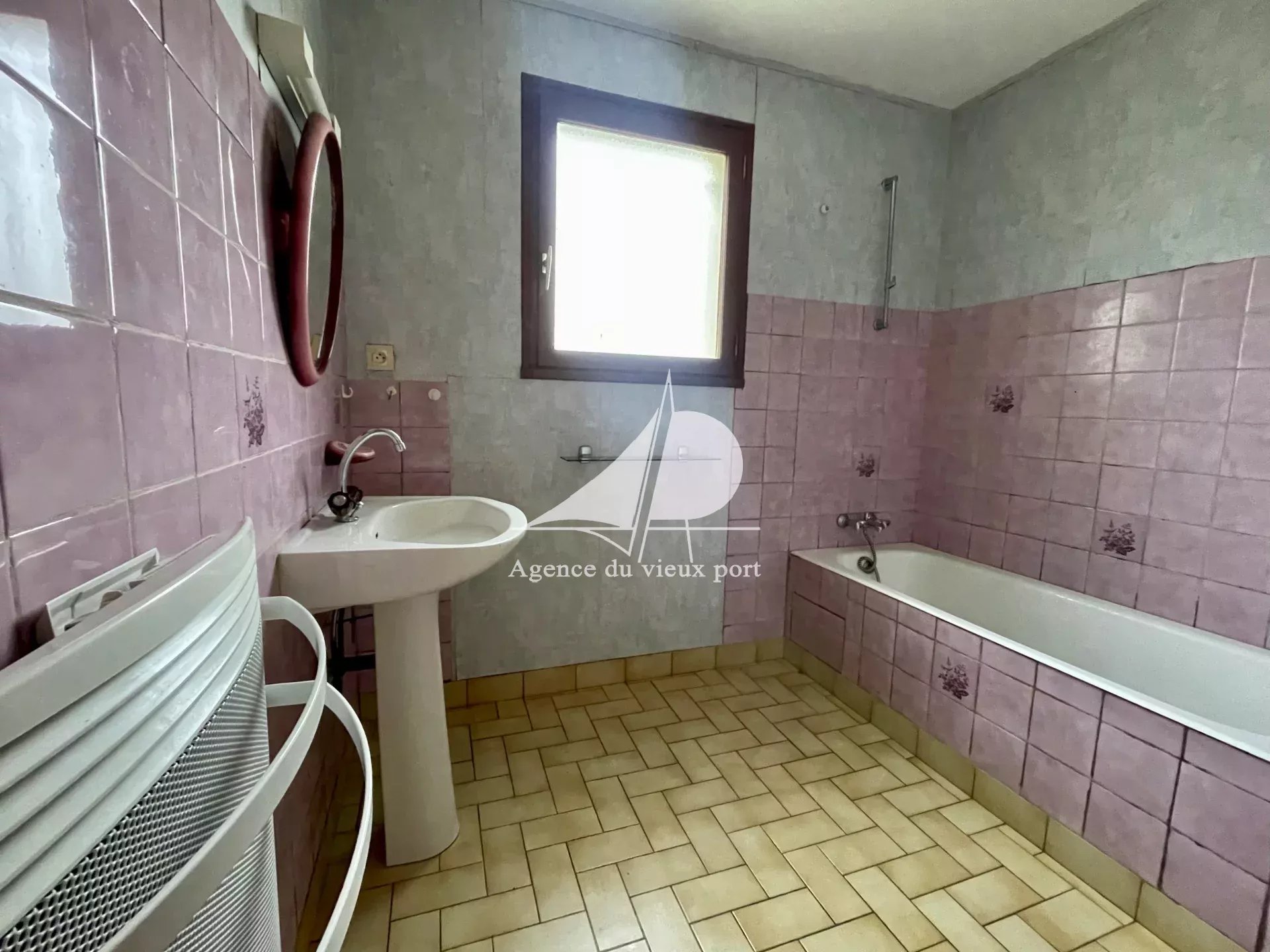 Sur terrain clos d'environ 678 m2, maison de plain pied d'environ 90 m2 comprenant : entrée, beau séjour-salon de près de 40 m2 avec cheminée et cuisine semi ouverte, dégagement, trois chambres, salle de bains, toilettes.