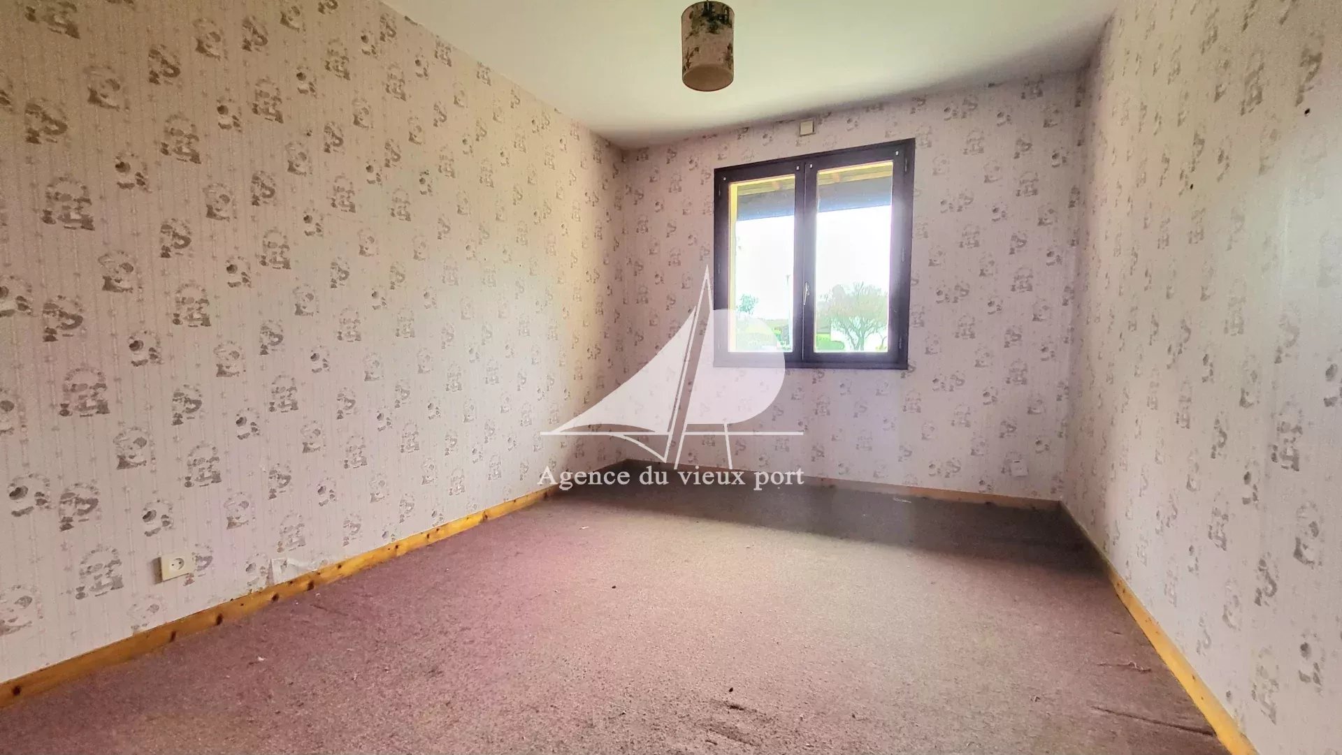 Agence du Vieux Port Pornic, à vendre : Sur terrain clos d'environ 678 m2, maison de plain pied d'environ 90 m2 comprenant : entrée, beau séjour-salon de près de 40 m2 avec cheminée et cuisine semi ouverte, dégagement, trois chambres, salle de bains, toilettes. Plage de Joalland à 1,2 km et bourg de la Plaine à env 2 km. Prévoir travaux. Prix FAI : 275 600 € dont 6% TTC d'honoraires charge acquéreur. Les informations sur les risques auxquels ce bien est exposé sont disponibles sur le site Géorisques. https://www.georisques.gouv.fr