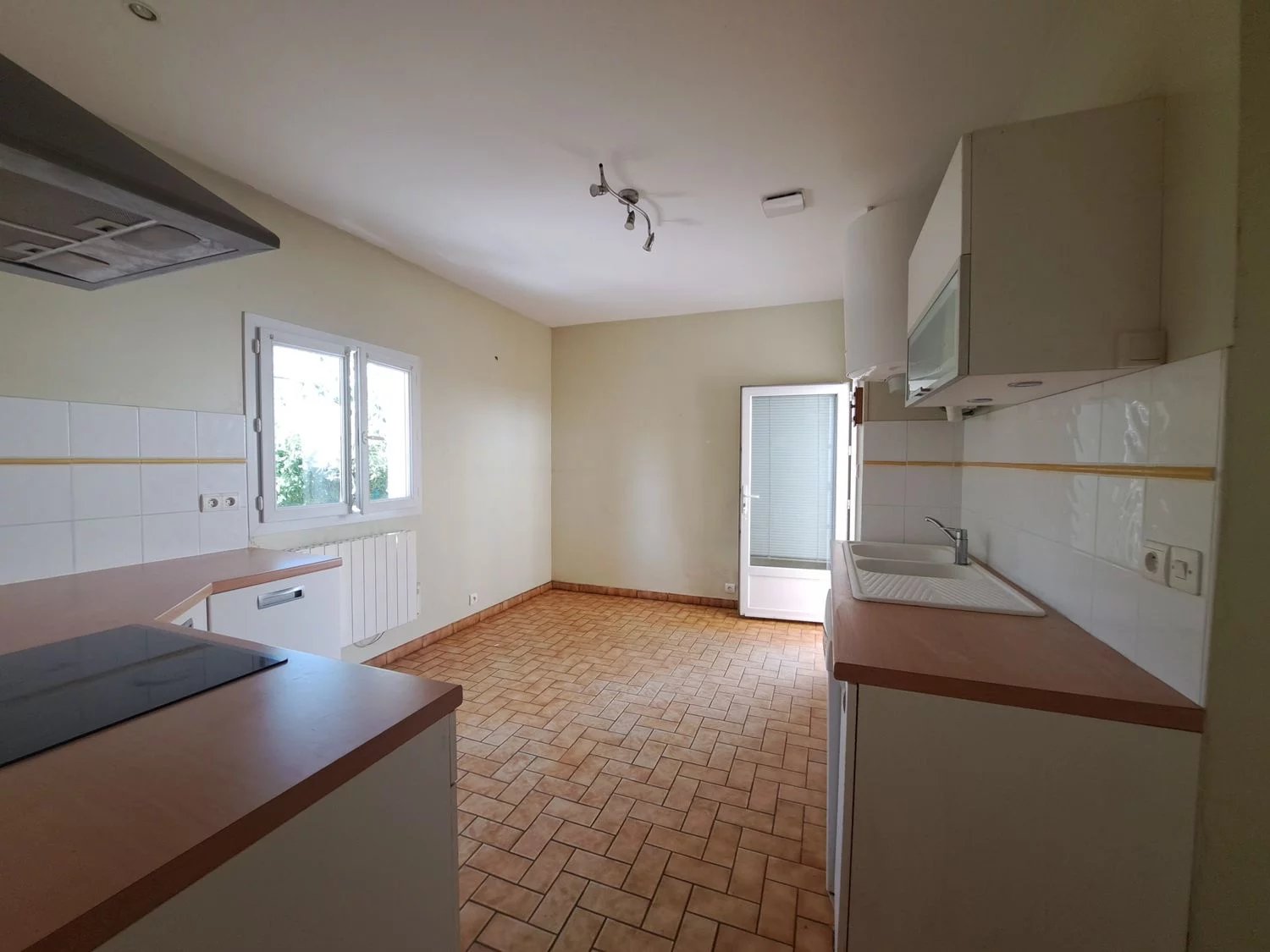La maison de plain-pied, se compose d' une cuisine aménagée et fonctionnelle de 14 m2, avec espace repas, un salon lumineux de 17 m2, deux chambres, une salle d'eau avec douche, un WC séparé.