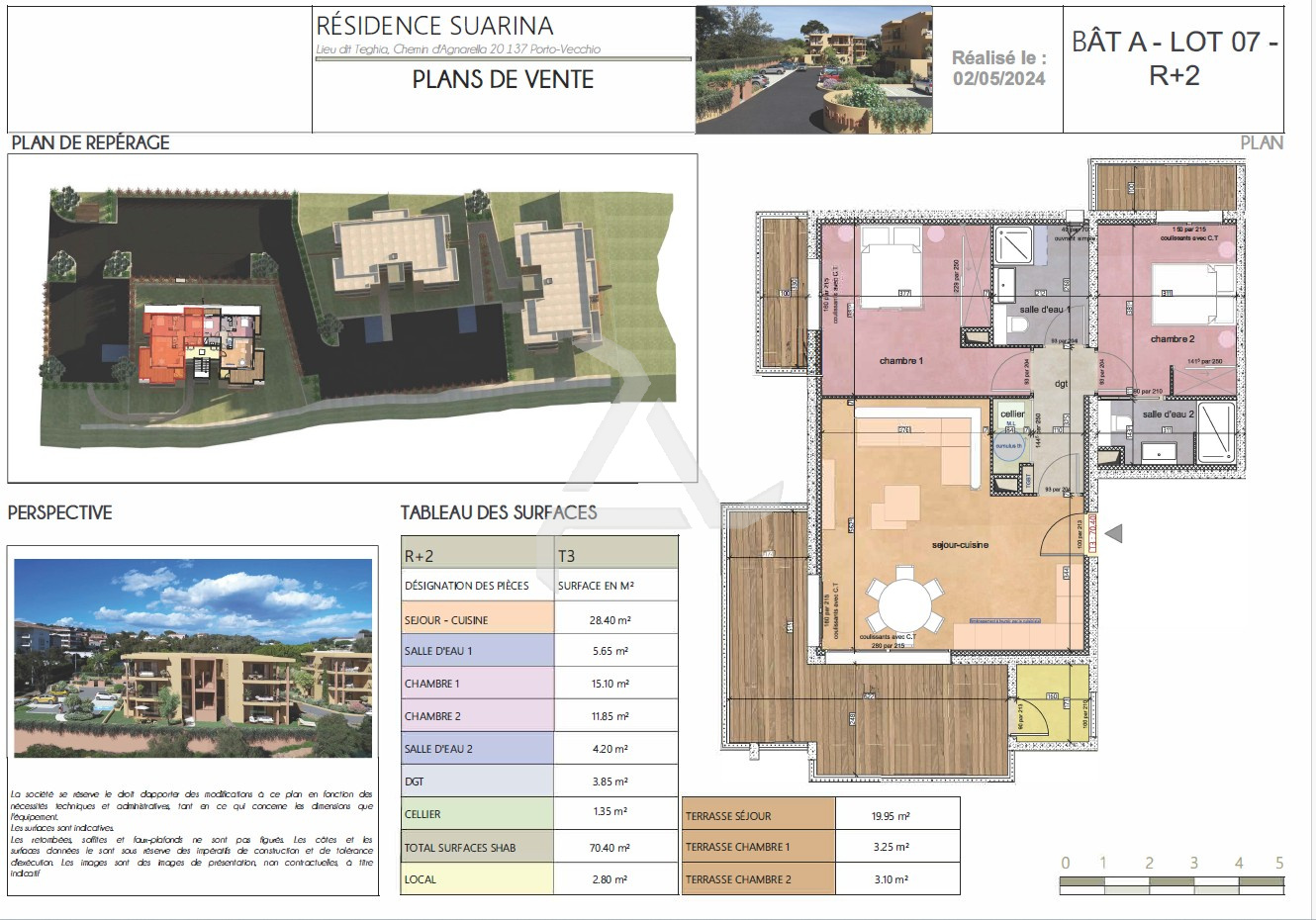 L'appartement comprenant deux terrasses bénéficie d'une exposition Sud-Ouest .Il vous est vendu avec deux places de parking privatives.