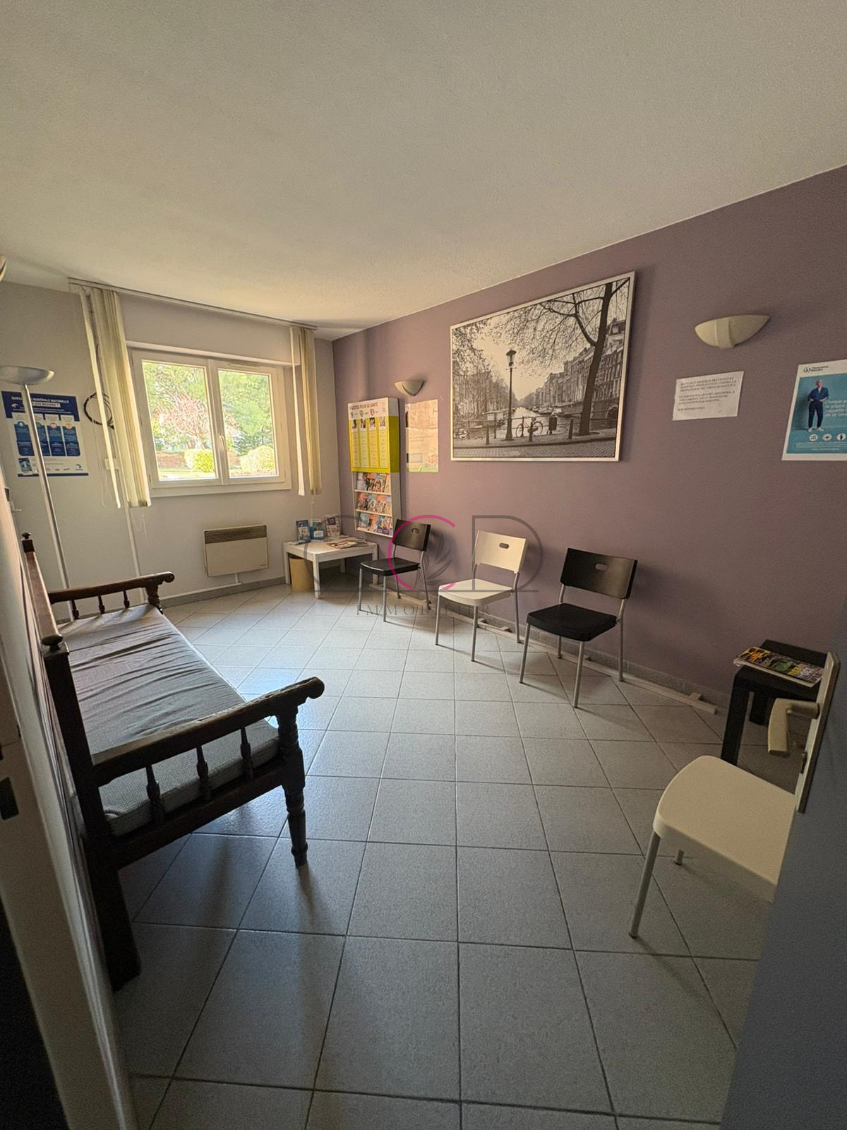 GCD Immobilier vous propose à la location un local professionnel à louer au sein d'un cabinet médical. Le cabinet est déjà occupé par deux chirurgiens dentiste et deux kinésithérapeuthes ; il reste une salle à louer qui se décompose comme ceci : un bureau avec point d'eau et WC privé de 35 m2, une véranda attenante de 10 m2 ainsi qu'une salle d'attente privative de 13 m2. L'ensemble des espaces communs fait 40 m2 comprenant l'entrée, le secrétariat, couloirs et deux WC.