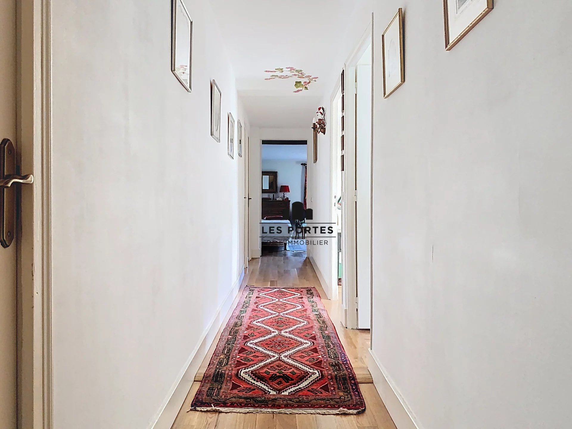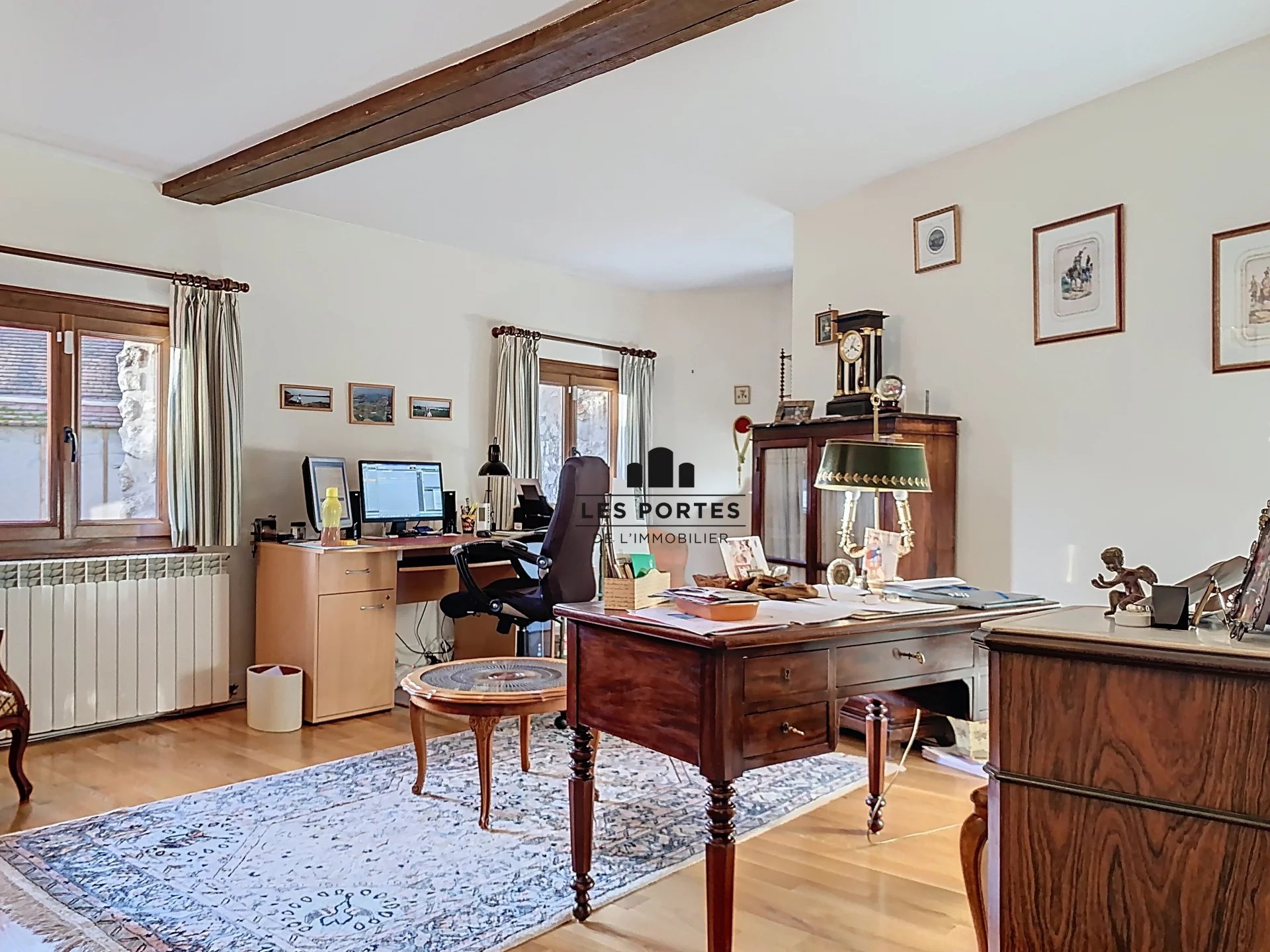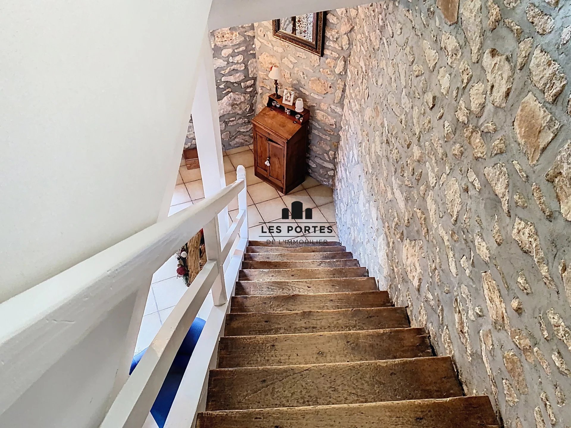 Édifiée sur un jardin intimiste de 307 m², entièrement clos de murs, la propriété séduit dès l’entrée (13,80 m²) par son atmosphère chaleureuse et raffinée. Le vaste séjour de caractère de 52 m², sublimé par des pierres et poutres apparentes, offre un espace de réception élégant et convivial.