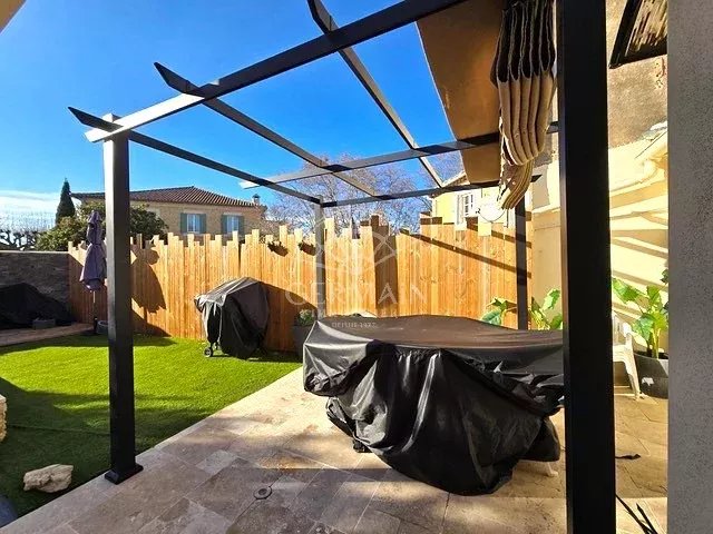 Côté extérieur, vous pourrez profiter d'une jolie terrasse en travertin avec sa pergola, d'un jardinet à l'abri des regards et d'une allée où l'on peut stationner un véhicule.