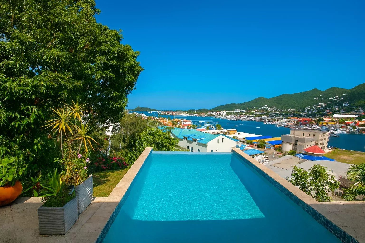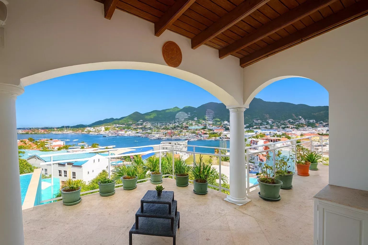 Perched on a lush hillside with sweeping views over the turquoise bay and marina, this charming 3-bedroom, 3-bathroom villa delivers the best of Sint Maarten indoor-outdoor living. Enjoy sun-soaked days by the private infinity pool and expansive terrace, framed by tropical greenery and uninterrupted ocean vistas. Inside, the home feels bright and breezy with high vaulted ceilings, an open living/dining area, and a fully equipped kitchen ideal for easy island entertaining.