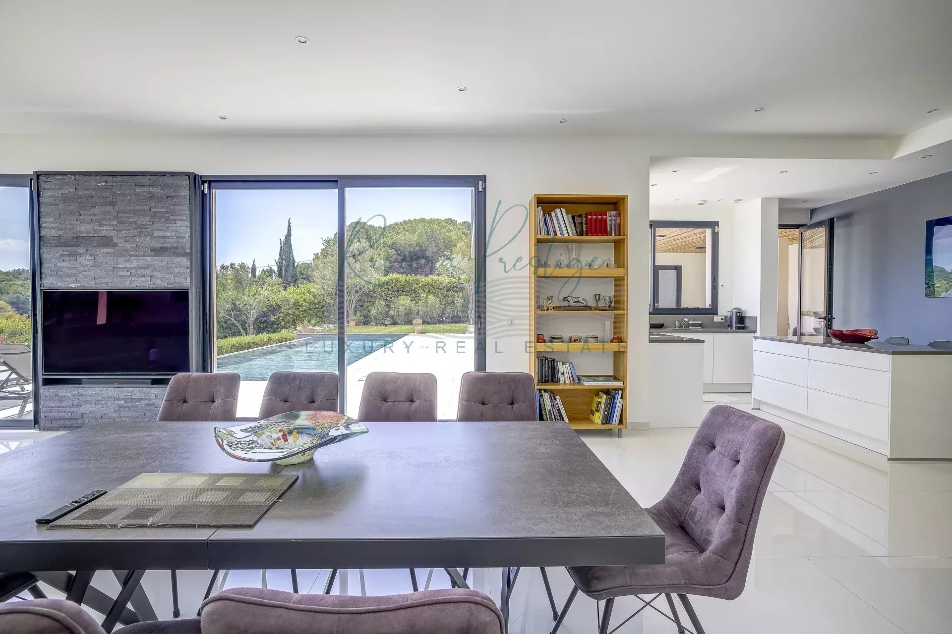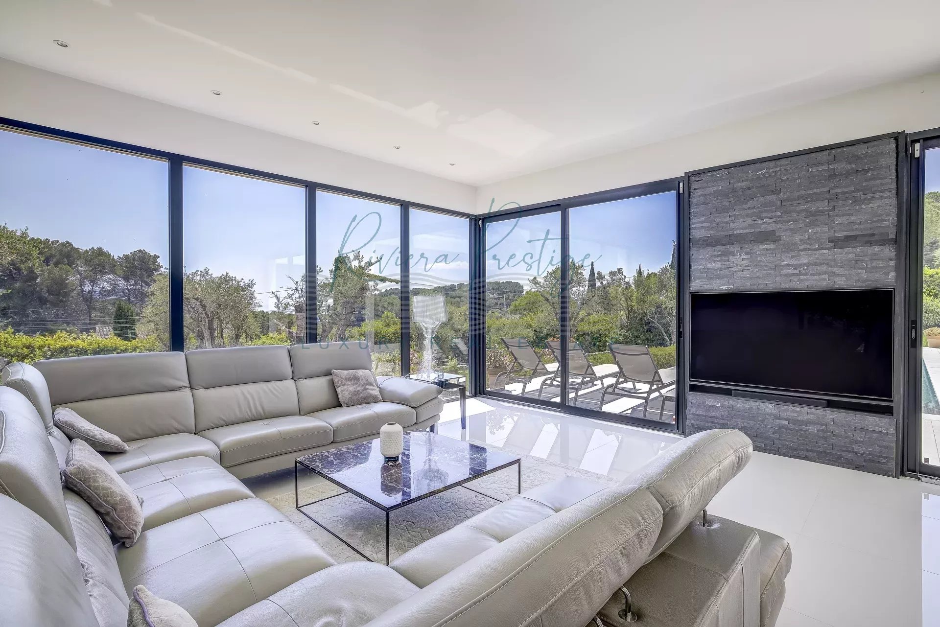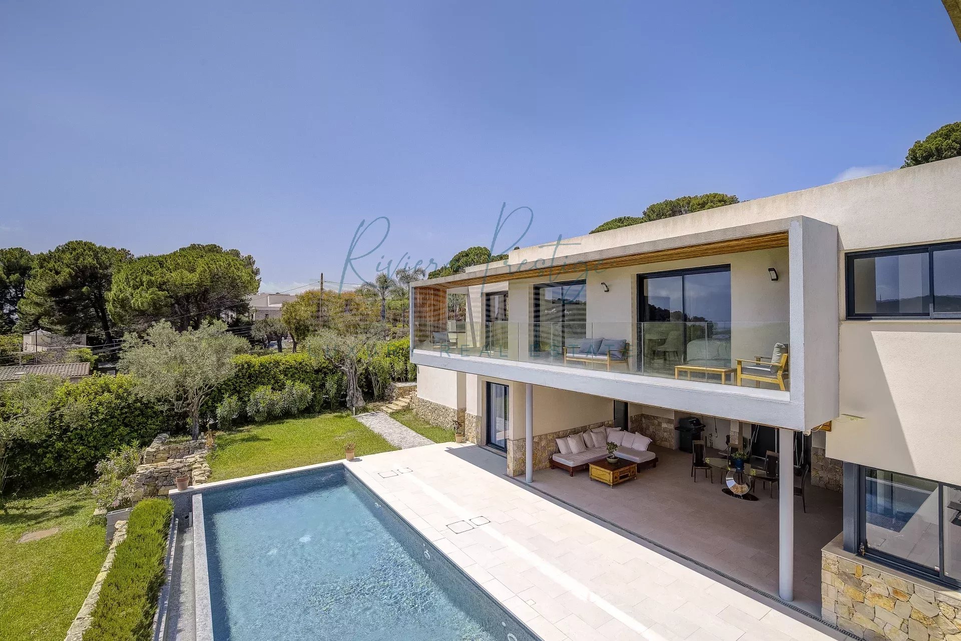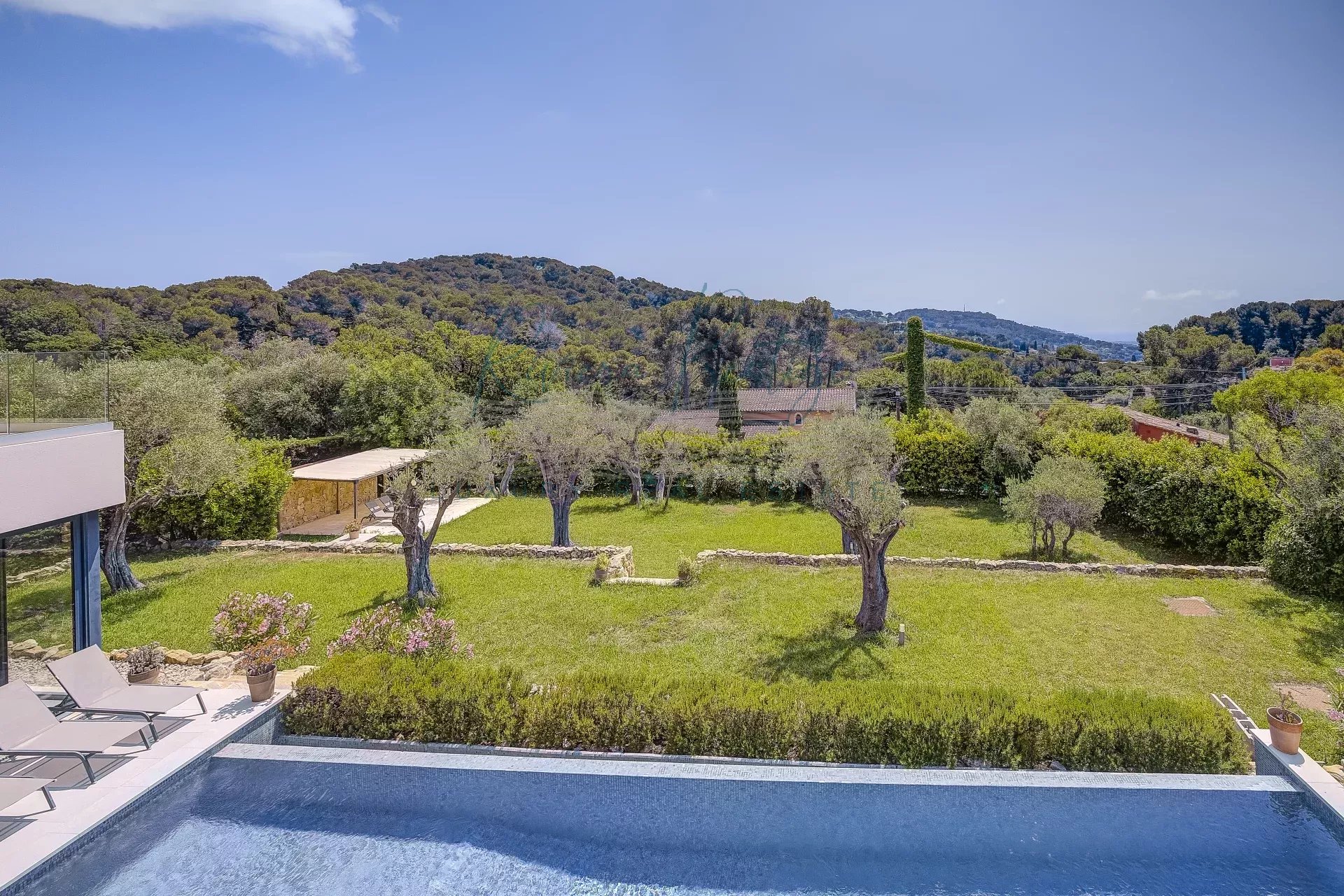Mougins, dans le secteur très prisé du hameau du Guillet, villa contemporaine bénéficiant d'un aperçu mer. Construite en 2017 ,d'une superficie habitable de 314m²,elle est édifiée sur un terrain arboré avec piscine à débordement et oliviers centenaires. Exposée sud, elle se découpe en 3 niveaux de vie: Au rez de chaussée, cuisine ouverte sur grande réception s'ouvrant sur une large terrasse, cuisine d'été, 1 chambre indépendante avec sa salle de douche. A l'étage 5 chambres dont 3 en suite avec salle de douche dont une Master avec dressing et terrasse privée.En sous-sol: Spa, salle de sport et buanderie. Garage et nombreux stationnements extérieurs.