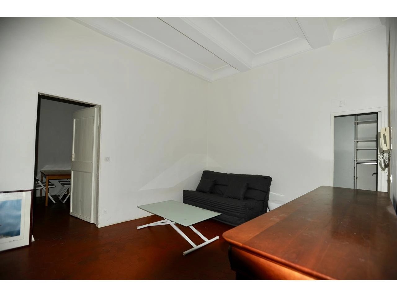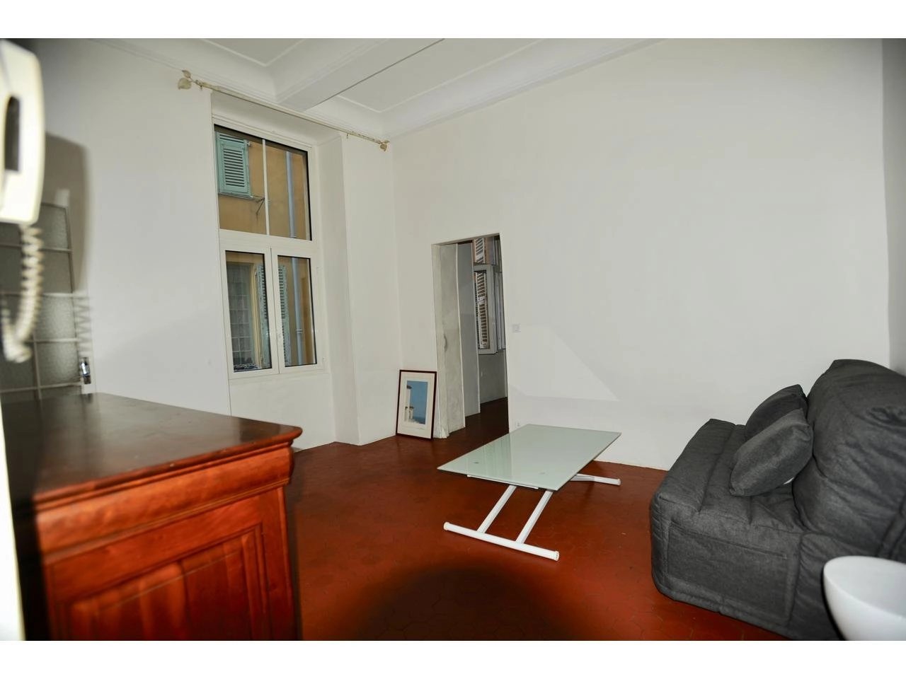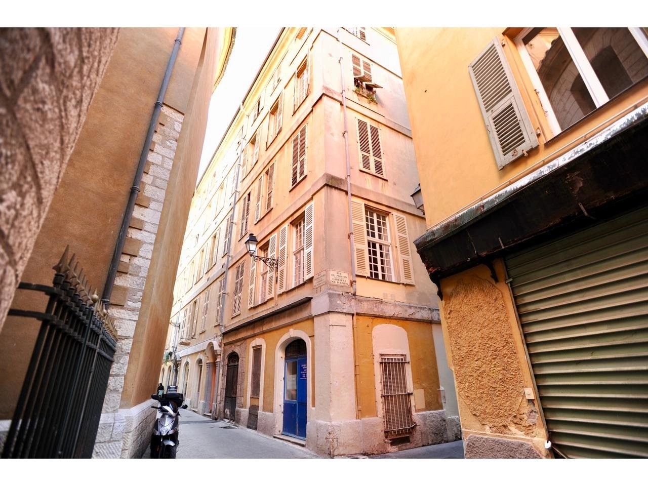 Au cœur du Vieux Nice, à quelques mètres de la Cathédrale Sainte Réparate, proche mer, tram et toutes commodités, vaste F1 meublé, beaux volumes, grande cuisine équipée et rangements.