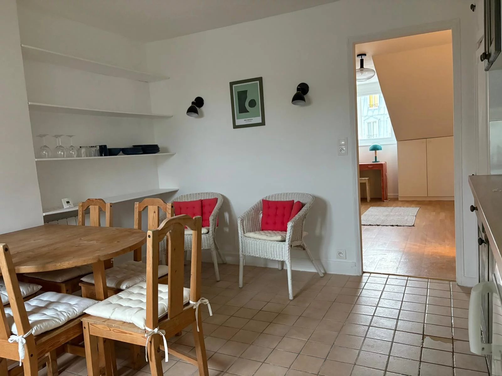 Obriane Immobilier vous propose ce magnifique studio à la location meublée, mansardé à proximité des commerces et transport, au dernier étage, 33m2 (30,59m2 loi carrez, 37,66m2 au sol) comprenant: une entrée, une pièce principale, une cuisine équipée et séparée, une salle d'eau avec WC. VUE ENTIÈREMENT DÉGAGÉE SUR LES TOITS DE PARIS. Disponible de suite.