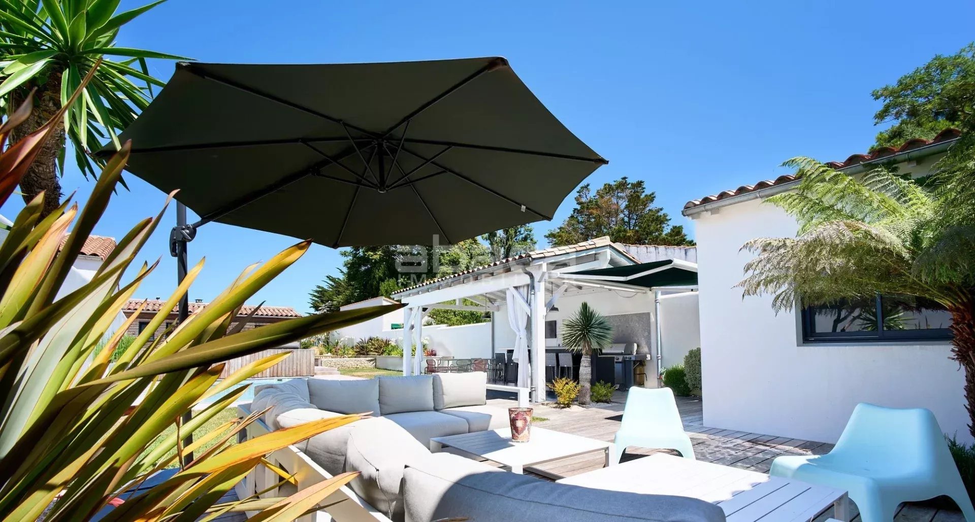 EXCEPTIONNELLE, maison vue mer avec prestations haut de gamme, elle comprend une pièce de vie avec cuisine ouverte , 6 chambres dont deux suite avec sa salle d'eau privative, salle d'eau et WC. Beau jardin avec piscine, abri jardin, cuisine d'été et terrasses. TRES RARE, GROS COUP DE COEUR !!