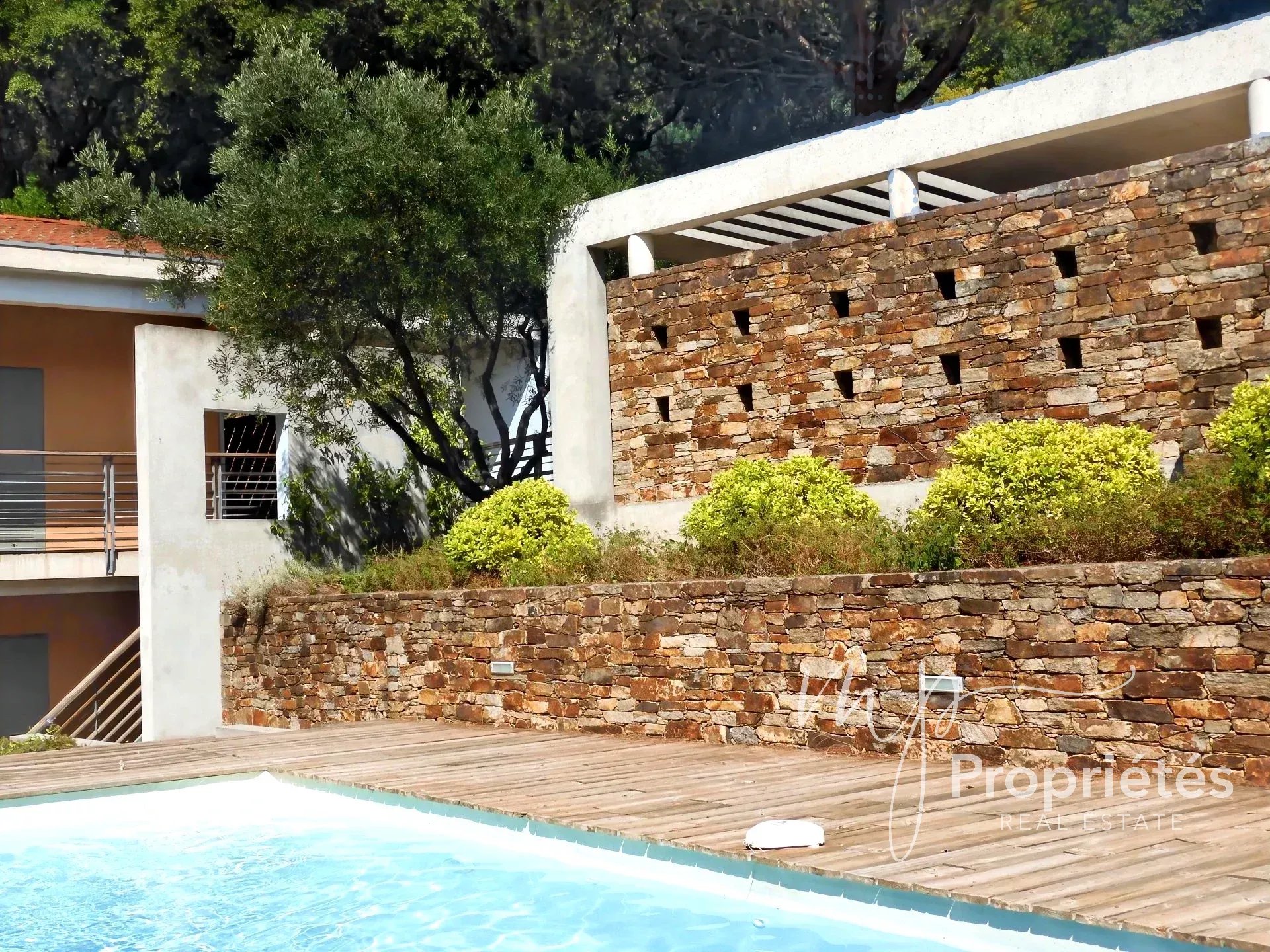 Rayol Canadel sur Mer: Villa d’architecte 4 chambres de 199,50 m²environ avec piscine et vue mer à deux pas du village, et à 10 minutes à pied de la plage du Rayol . Cette propriété édifiée sur 2100m² de terrain se distingue par son emplacement idyllique en pleine nature .
