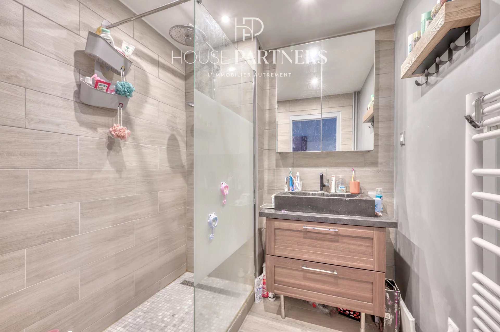 L’appartement dispose de deux grandes chambres, dont l’une avec un accès direct à un second balcon, apportant une belle ouverture vers l’extérieur. La salle de douche, est indépendante des toilettes pour plus de confort au quotidien.