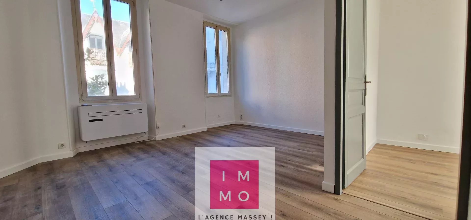 Appartement entièrement rénové avec une cave au centre-ville de Tarbes Dans un petit immeuble du centre-ville de Tarbes, je vous propose à la location cet appartement rénové en 2023 par des artisans. Vous entrez dans la pièce de vie , spacieuse et lumineuse. Vous accédez à la première chambre. Au bout du couloir, une cuisine séparée, aménagée et équipée. Une deuxième grande chambre complète l'appartement Un grand placard est complète cette pièce pour pouvoir y ranger vos affaires. Pour compléter le tous, une salle d'eau avec une grande douche. Vous avez une cave saine, des places de parking gratuite sur la voie public, au centre-ville de Tarbes proche de toute commodité. A venir visiter rapidement...