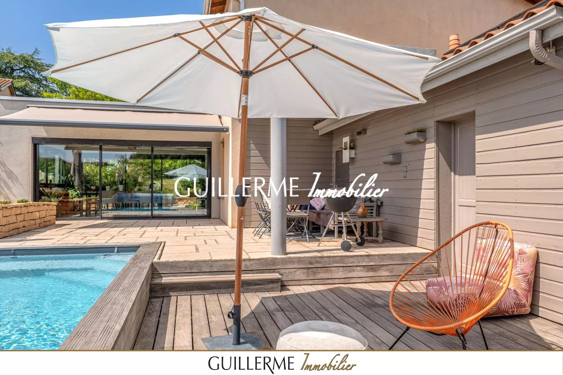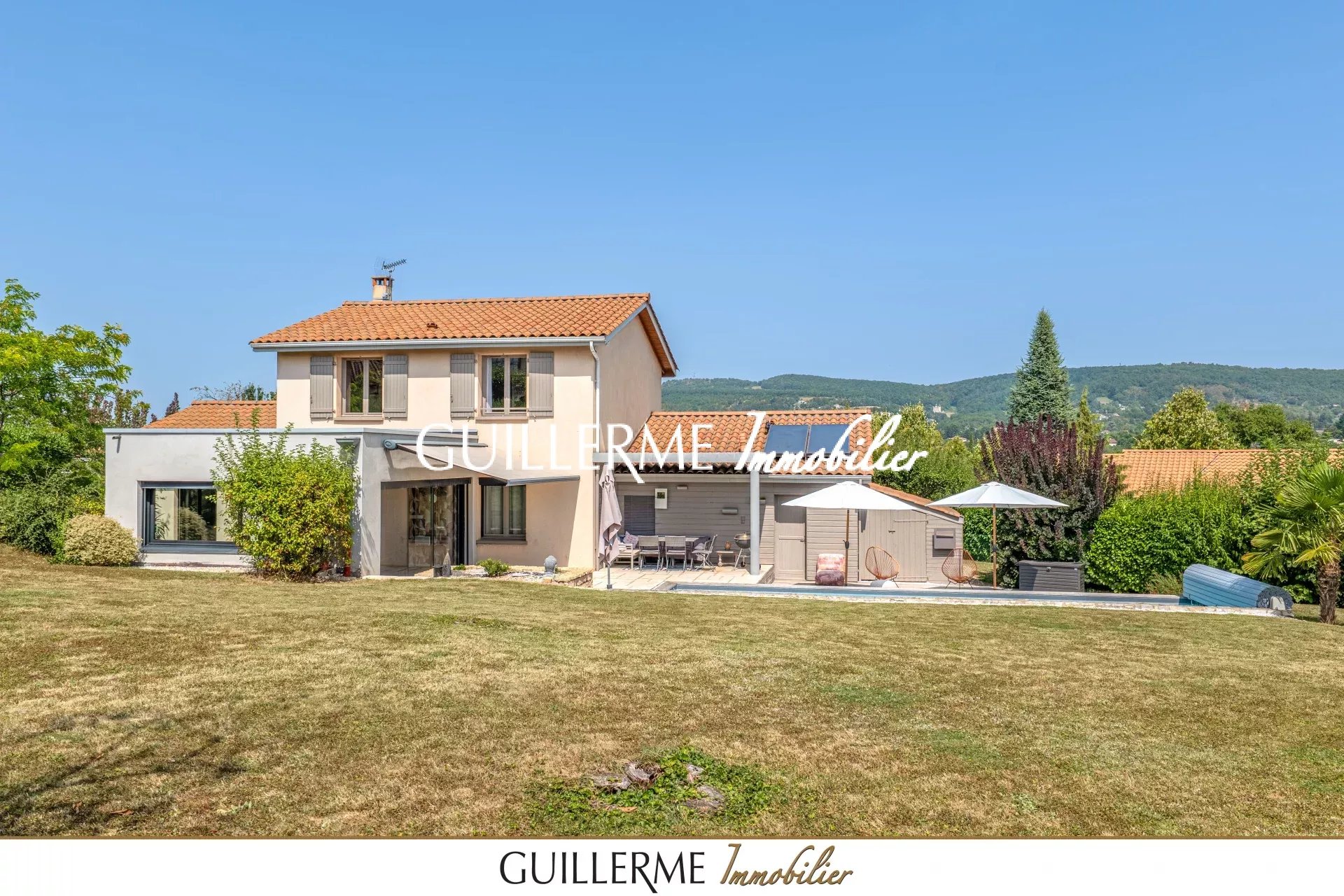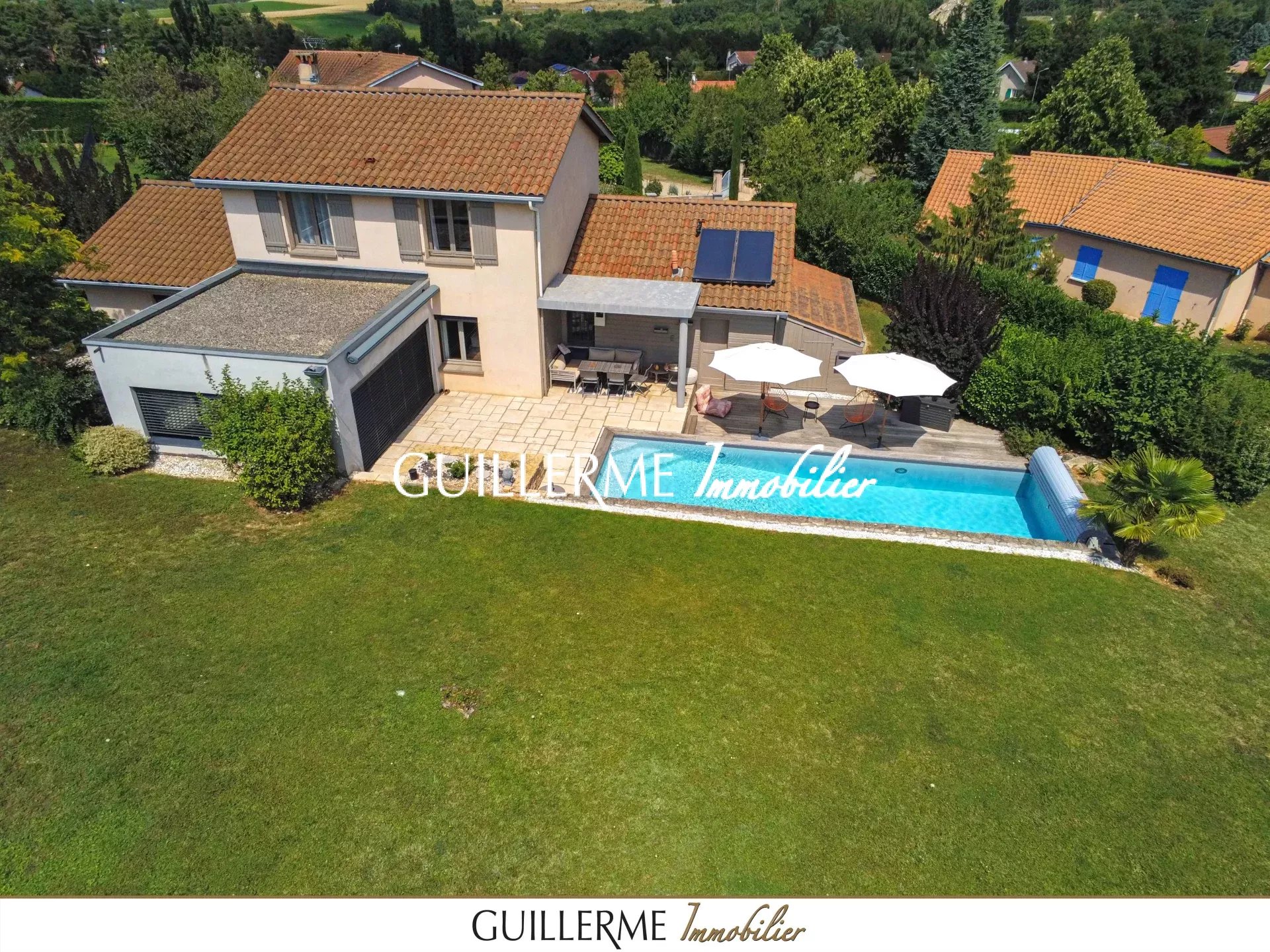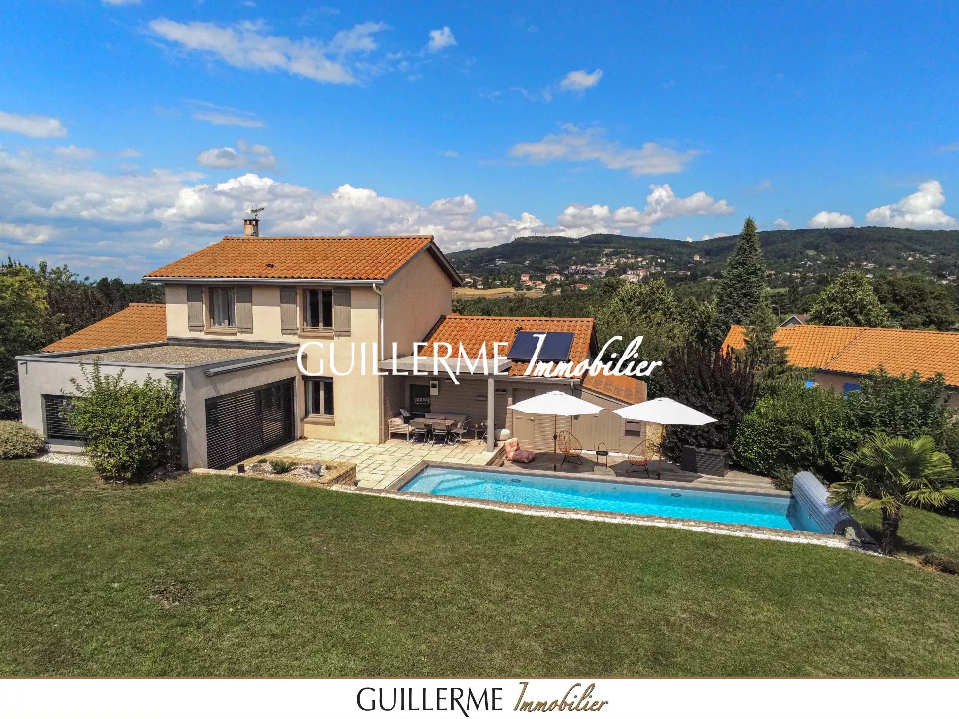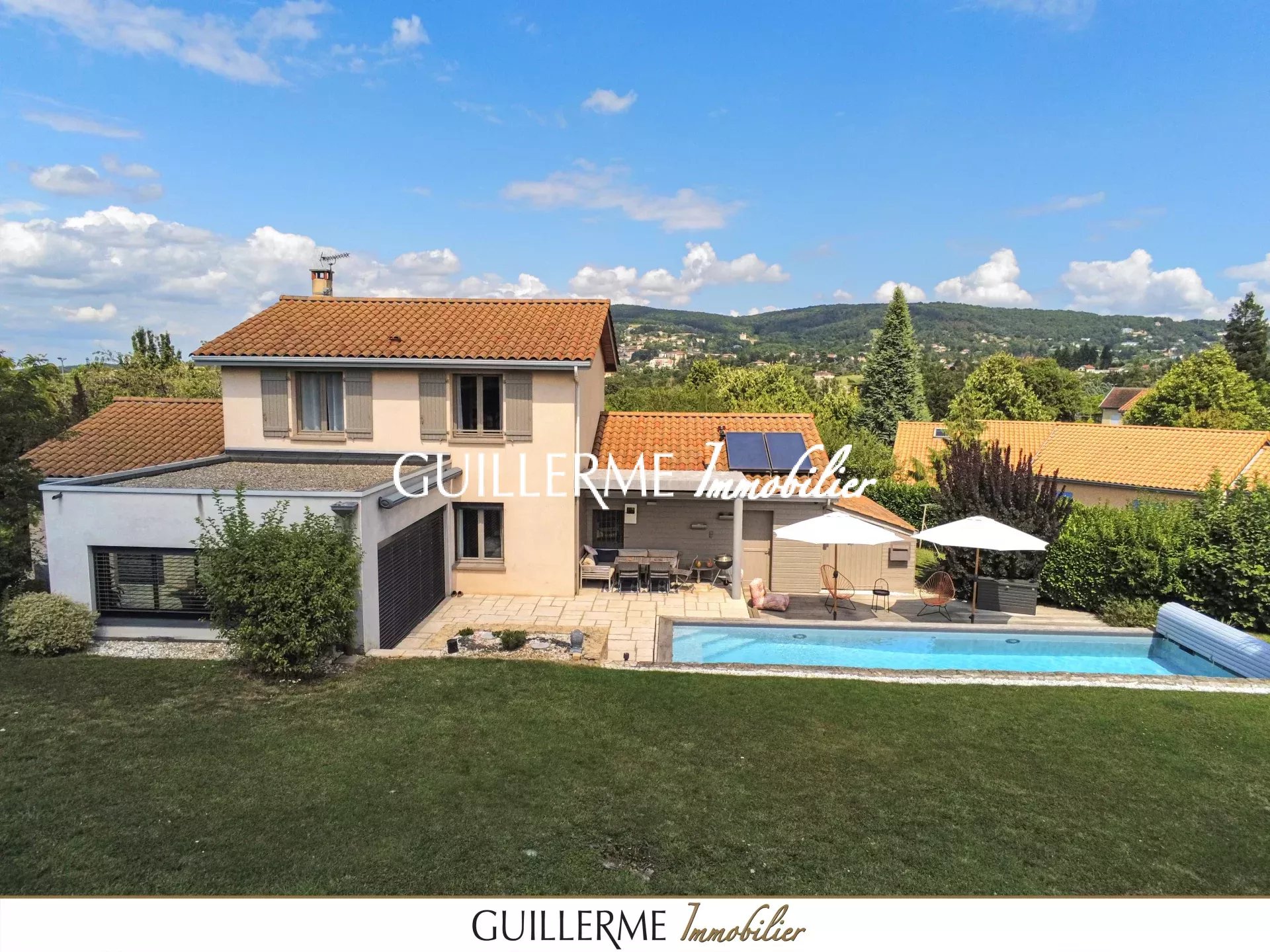 Votre agence Guillerme Immobilier vous présente en exclusivité cette superbe maison de 168 m² habitables (206 m² utiles avec garage), située dans un environnement calme et privilégié à Dardilly-le-Haut, à deux pas du centre du village, des commerces et des transports.