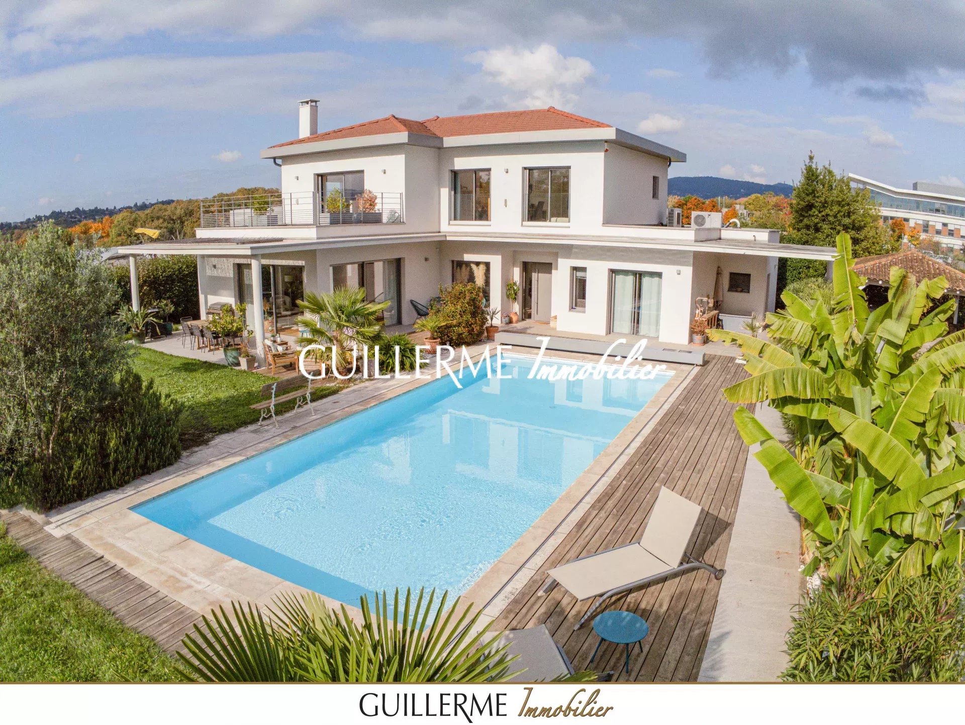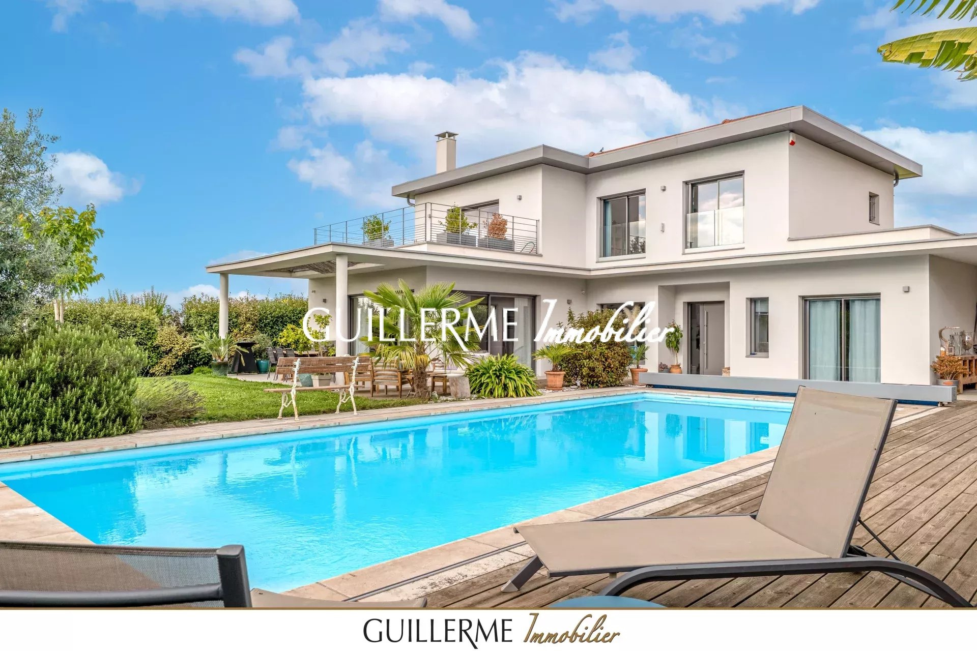 Votre agence Guillerme Immobilier vous présente , en exclusivité, cette somptueuse villa contemporaine édifiée en 2019, et son terrain paysagé de 1900 m² avec piscine.