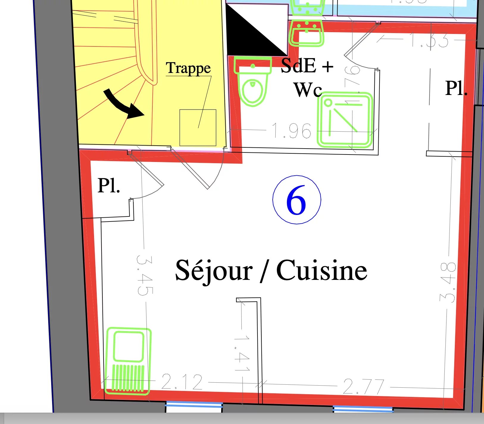 Les combles faisant la superficie de l'appartement sont vendus avec, possibilité de créer une mezzanine avec velux.