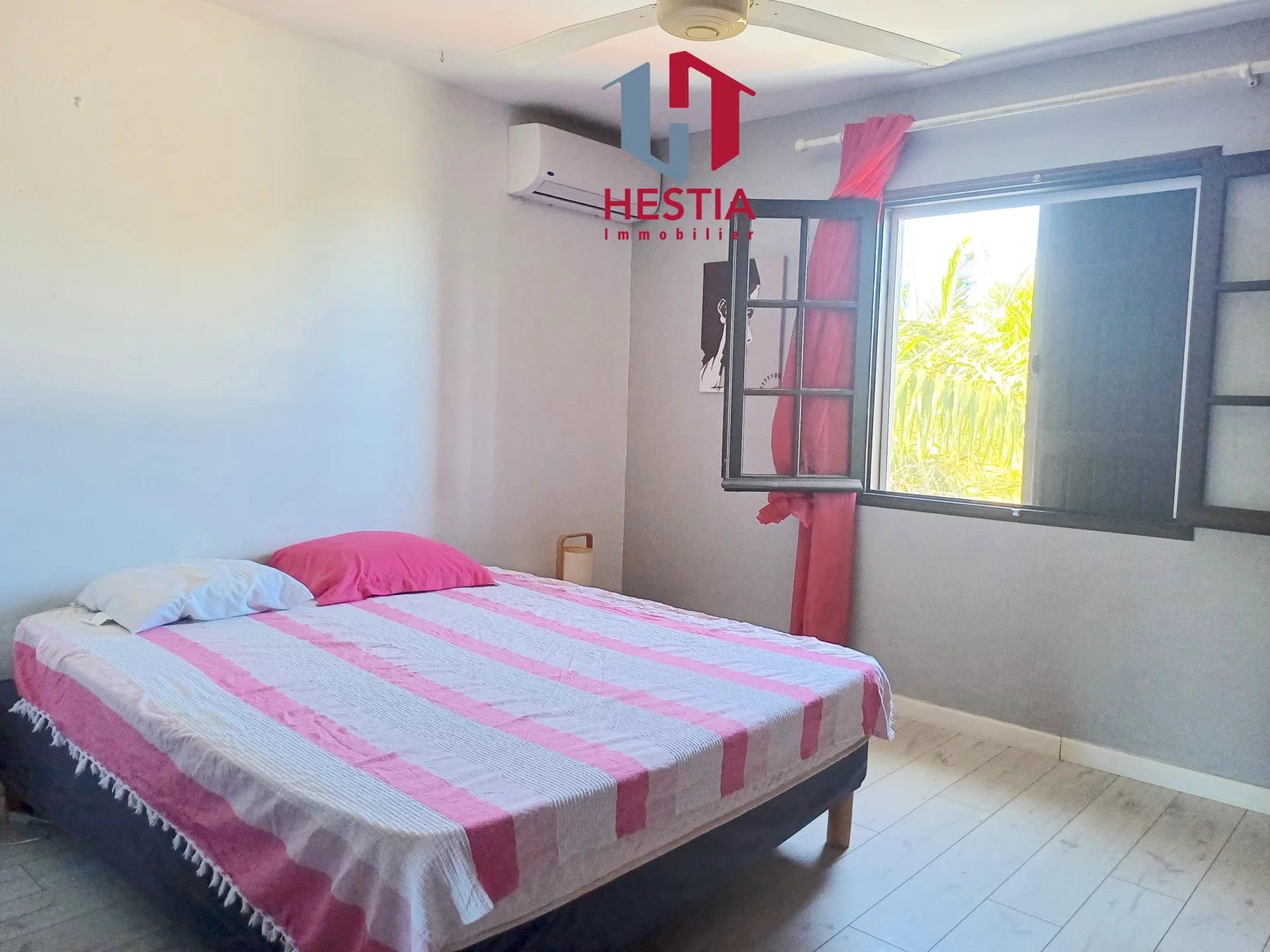 Hestia Immobilier vous présente en exclusivité cette charmante maison mitoyenne avec piscine, idéalement située au cœur d’un lotissement prisé, alliant calme, confort et sécurité. Nichée dans un environnement serein, cette maison offre : 3/4 chambres Un espace bureau, idéal pour le télétravail Une cuisine équipée, ouverte sur un séjour convivial et lumineux Une salle d’eau et des WC séparés Deux grandes terrasses de 24 m² et 28 m², parfaites pour recevoir ou pour profiter d’instants de détente Un guétali, véritable espace de vie extérieur supplémentaire Une piscine privative, pour savourer pleinement les journées ensoleillées Les charges incluses vous garantissent une tranquillité absolue : eau, électricité, internet et entretien du jardin. Un véritable havre de paix, idéal pour un couple en quête de confort et de sérénité. À visiter sans tarder !