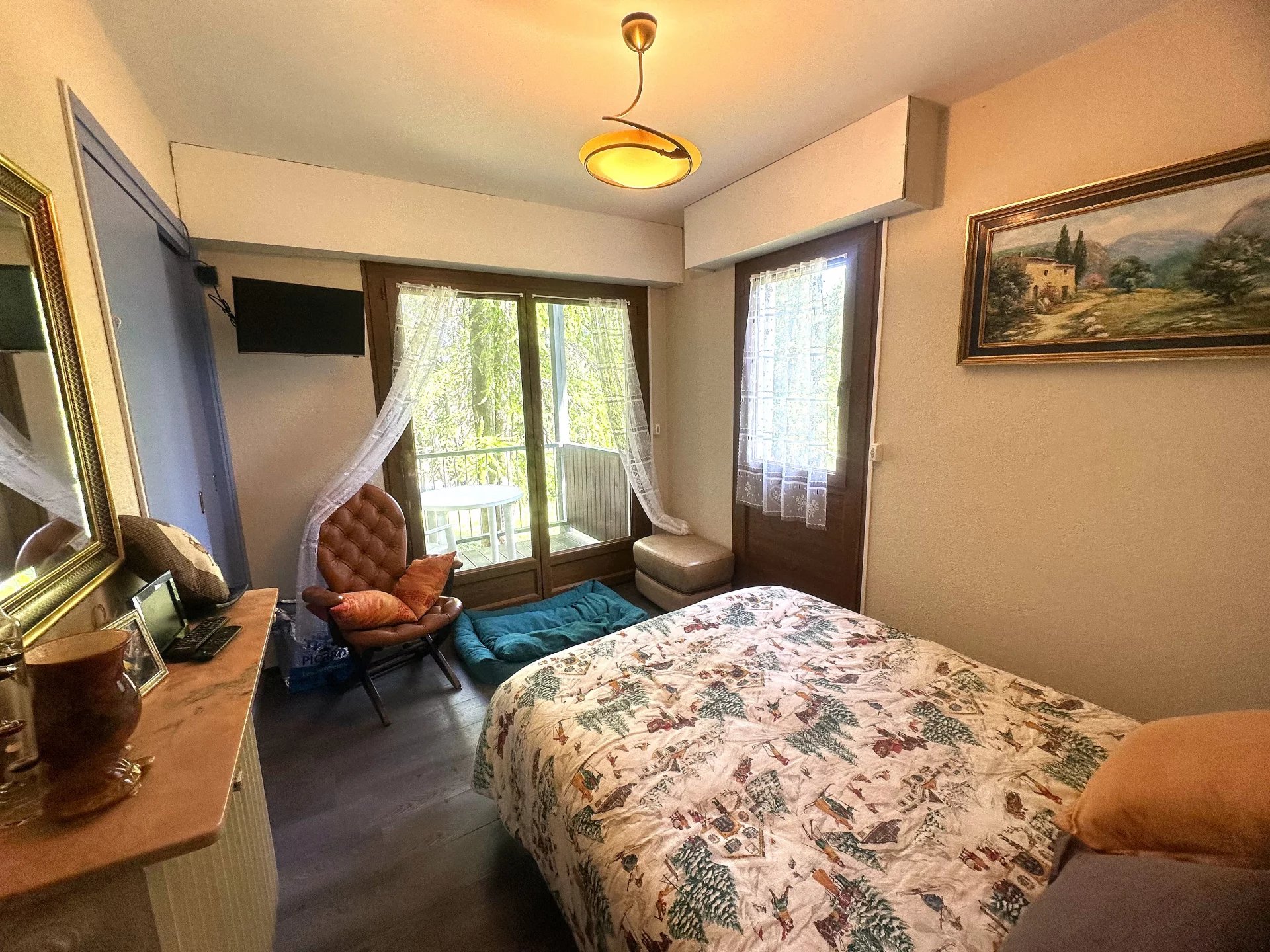 DE TRES BEAUX VOLUMES POUR CET APPARTEMENT disposant : d'une grande entrée avec placard, d'un grand séjour, cuisine avec cheminée donnant sur un balcon plein Sud. 2 belles chambres sur l'arrière, une salle de bain et un toilette séparé. LE PLUS : VENDU MEUBLE - DOUBLE PARKING INTERIEUR EN SUS