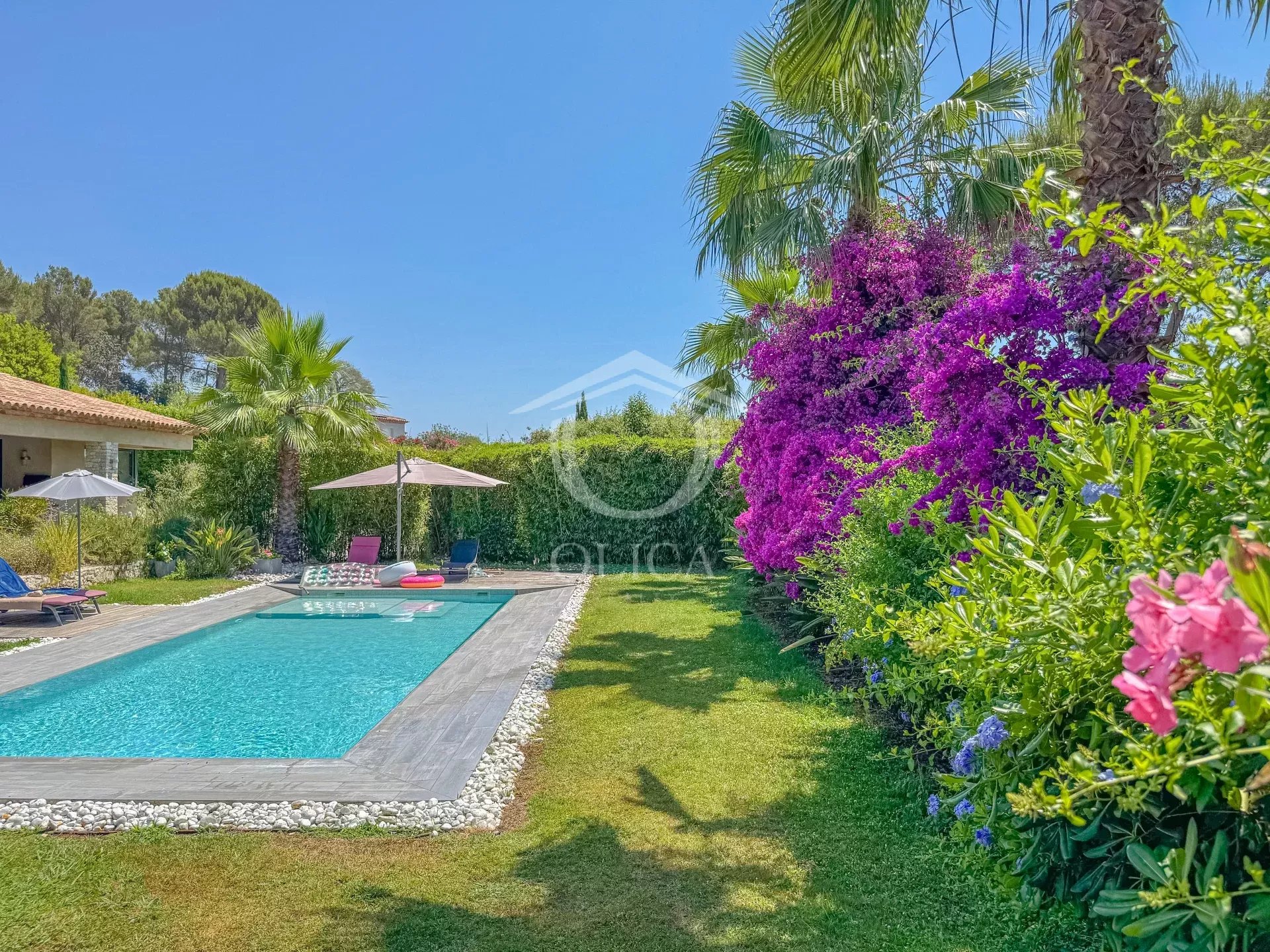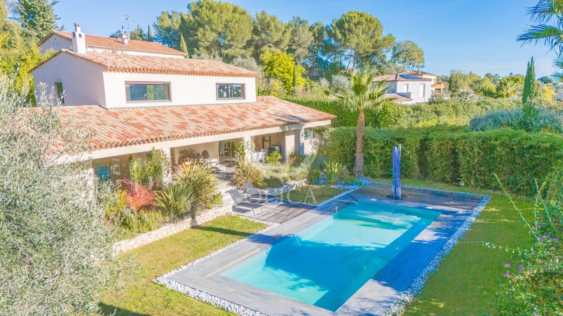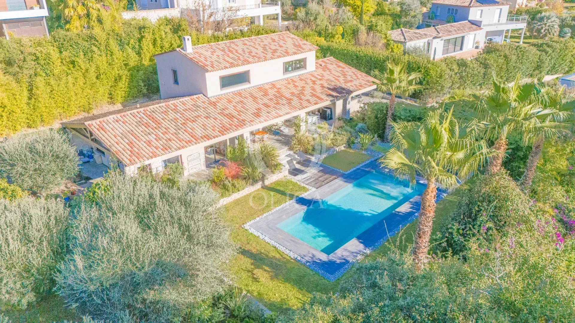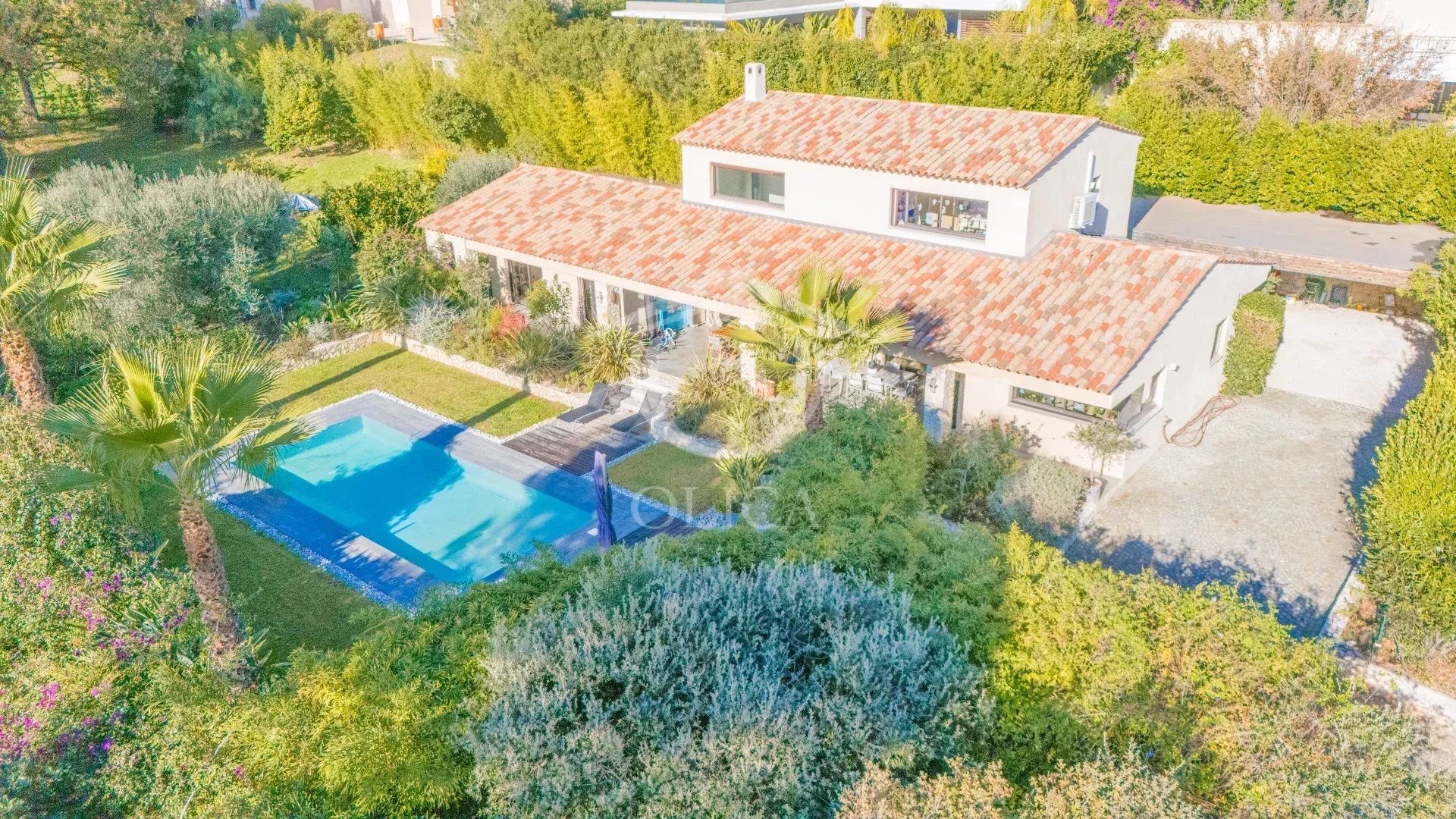 Dans le domaine sécurisé de la chèvre d'or à Biot, découvrez cette élégante villa édifiée en 2011 sur un terrain de 4300m2.