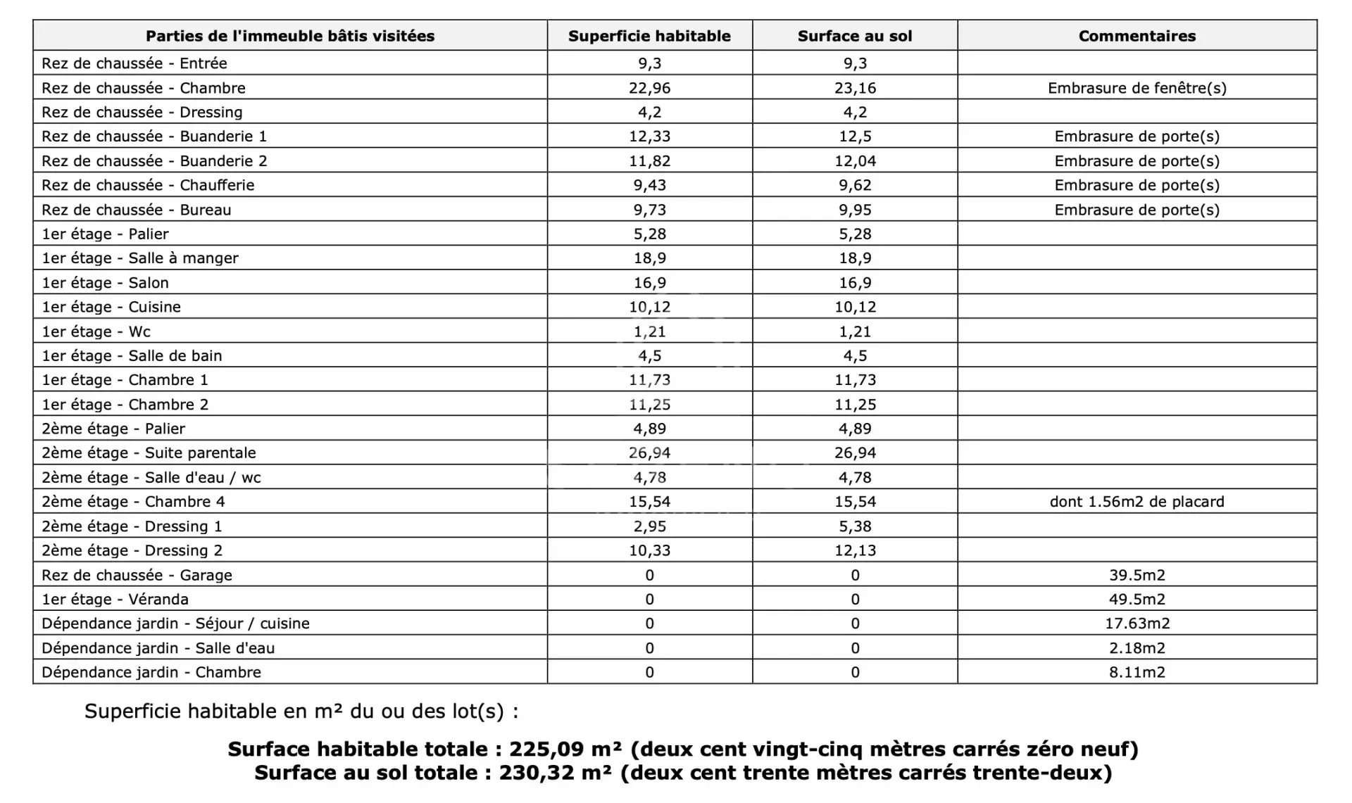 Deuxième étage : palier. suite parentale avec dressing et salle de bain privatif et douche. salle d’eau douche et WC. chambres et dressing. Vaste comble de 75m2 aménageable accès dressing.