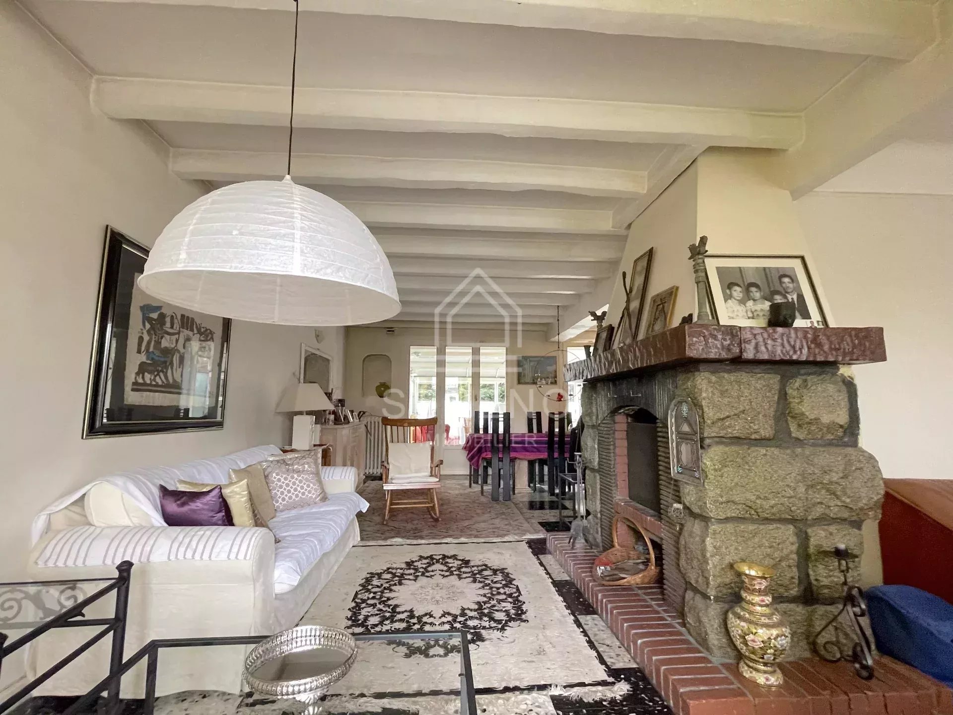 Au premier étage : un palier. salle à manger et salon avec une belle cheminée. cuisine séparée et aménagée. salle de bain. 2 belles chambres. WC séparé. avec véranda de 49.5m2 Expo Sud/Ouest.