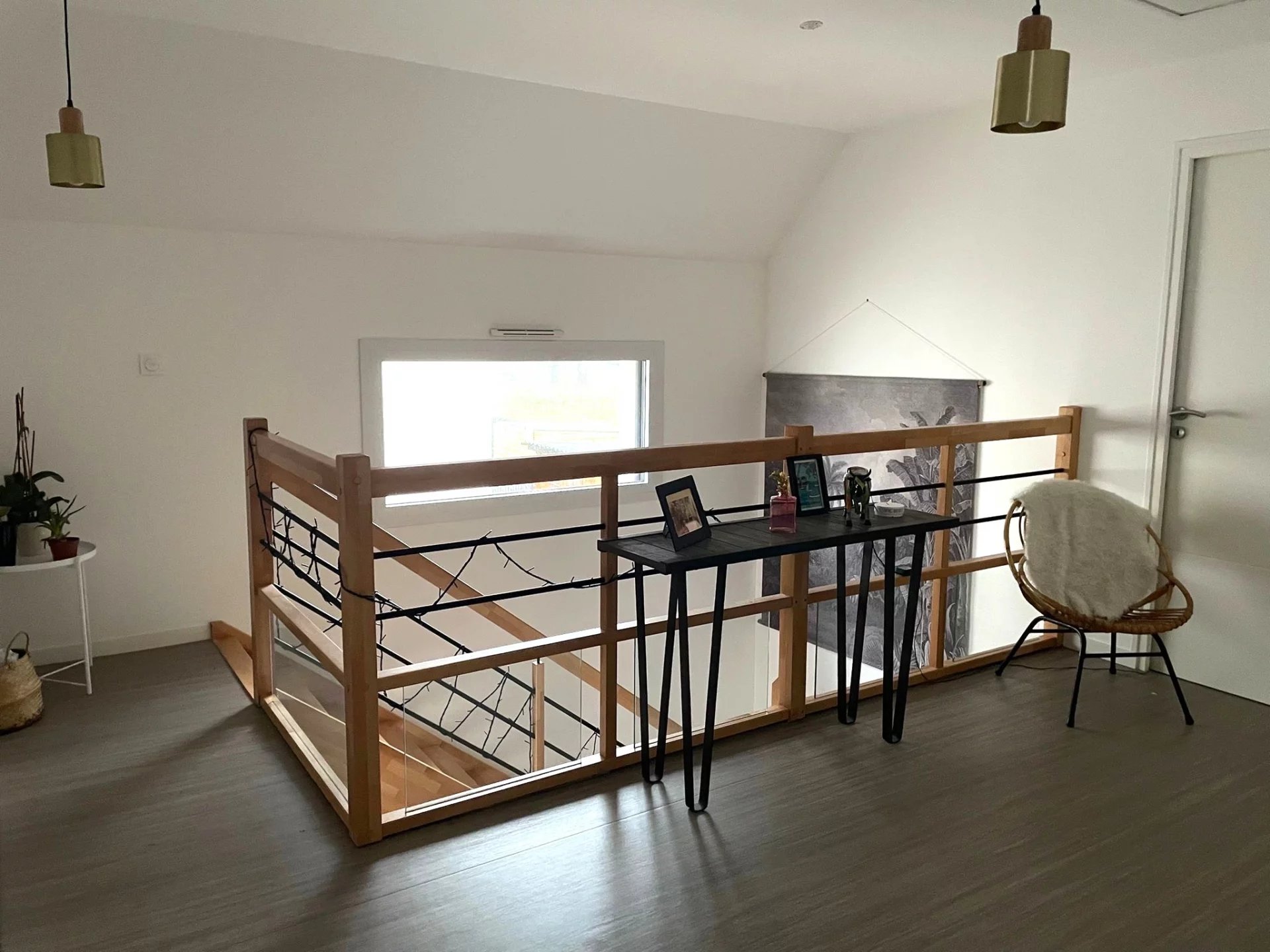 À l'étage, une grande mezzanine dessert 4 chambres confortables, toutes équipées de placards, dont une avec salle d'eau privative. Une salle de bains et un WC indépendants viennent renforcer le confort quotidien. L'allée permet aisément de stationner plusieurs véhicules et le jardin, idéalement exposé, n'attend plus que sa clôture.