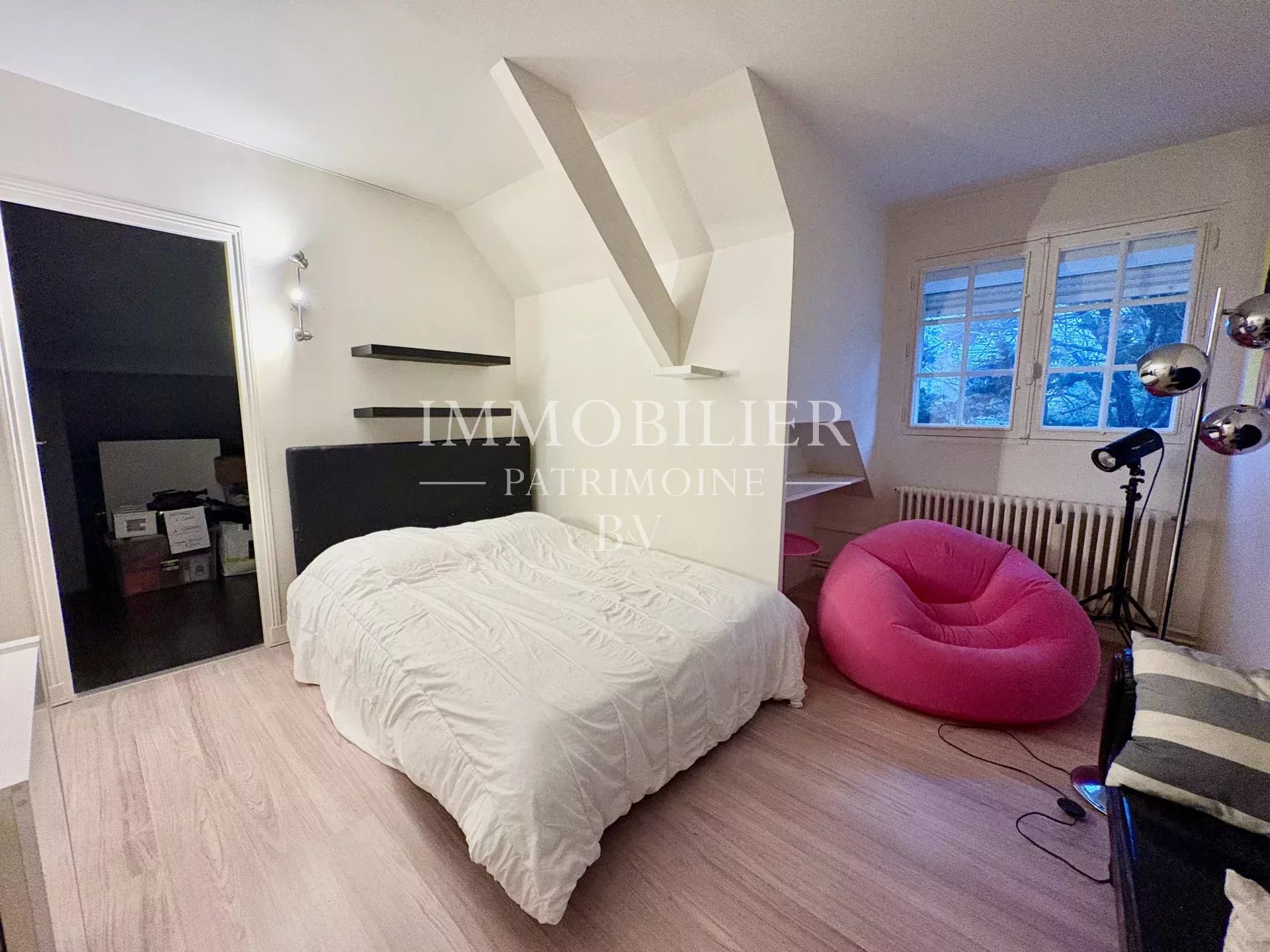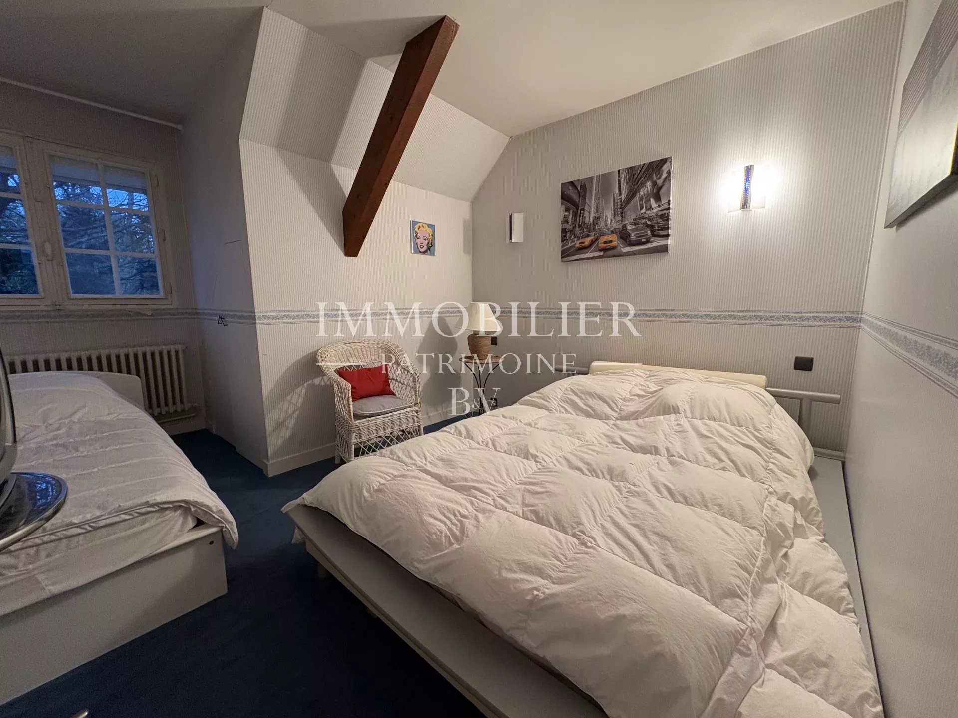 À l’étage, un palier dessert deux chambres dont une avec dressing privatif, ainsi qu'un deuxième dressing et une salle d’eau.