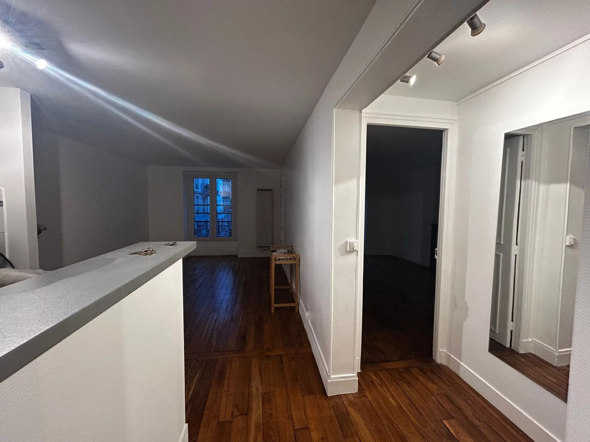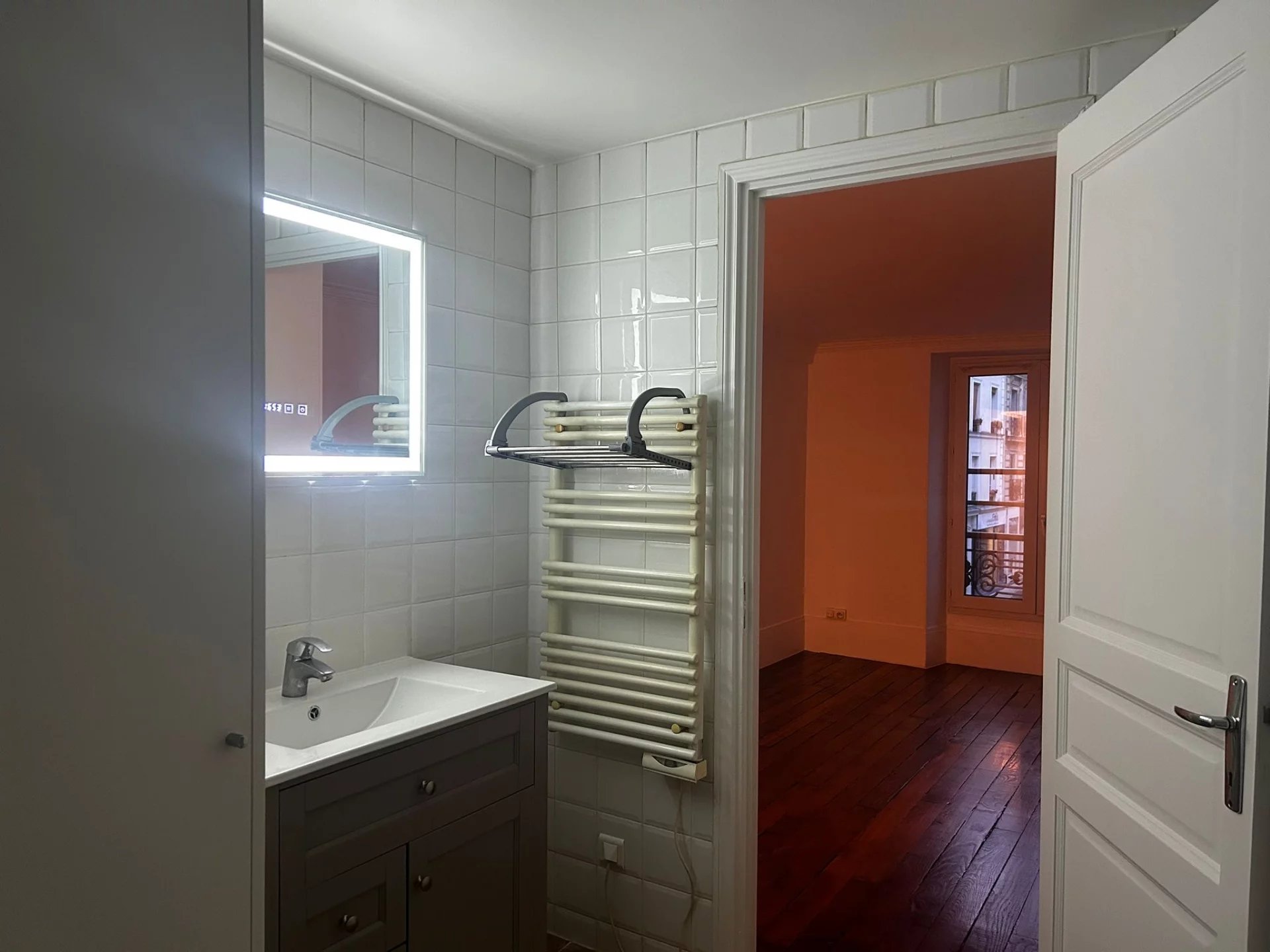 Situé au 1er étage d'une copropriété rue de Poissy, cet appartement dispose d'une chambre, d'un séjour/cuisine, d'une salle d'eau.