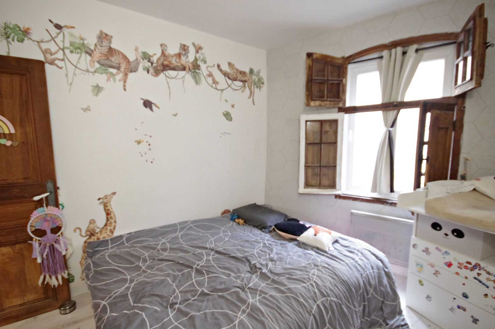 Au deuxième niveau, deux chambres lumineuses et une salle de bains avec WC entièrement rénovée, offrent un espace nuit confortable.