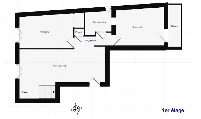 Il se compose d'un séjour/cuisine, 2 chambres, une salle de bains et WC