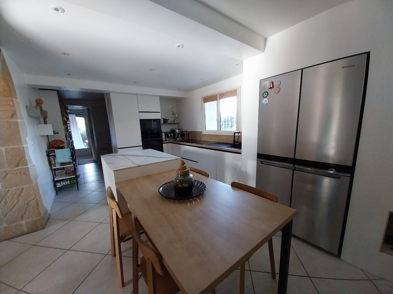 La bâtisse de 280m² , orientée Sud, avec vue Pyrénées , est composée d'une entrée typique avec son escalier bois, desservant un salon équipé d'un poêle sur la gauche, une salle à manger équipée également d'un poêle sur la droite , reliée à une cuisine récente moderne. Le rez de chaussée est complété par un espace rangement, une buanderie, une salle d'eau et un wc . A noter l'accés direct sur la terrasse arrière, idéale pour les jours chauds de l'été !