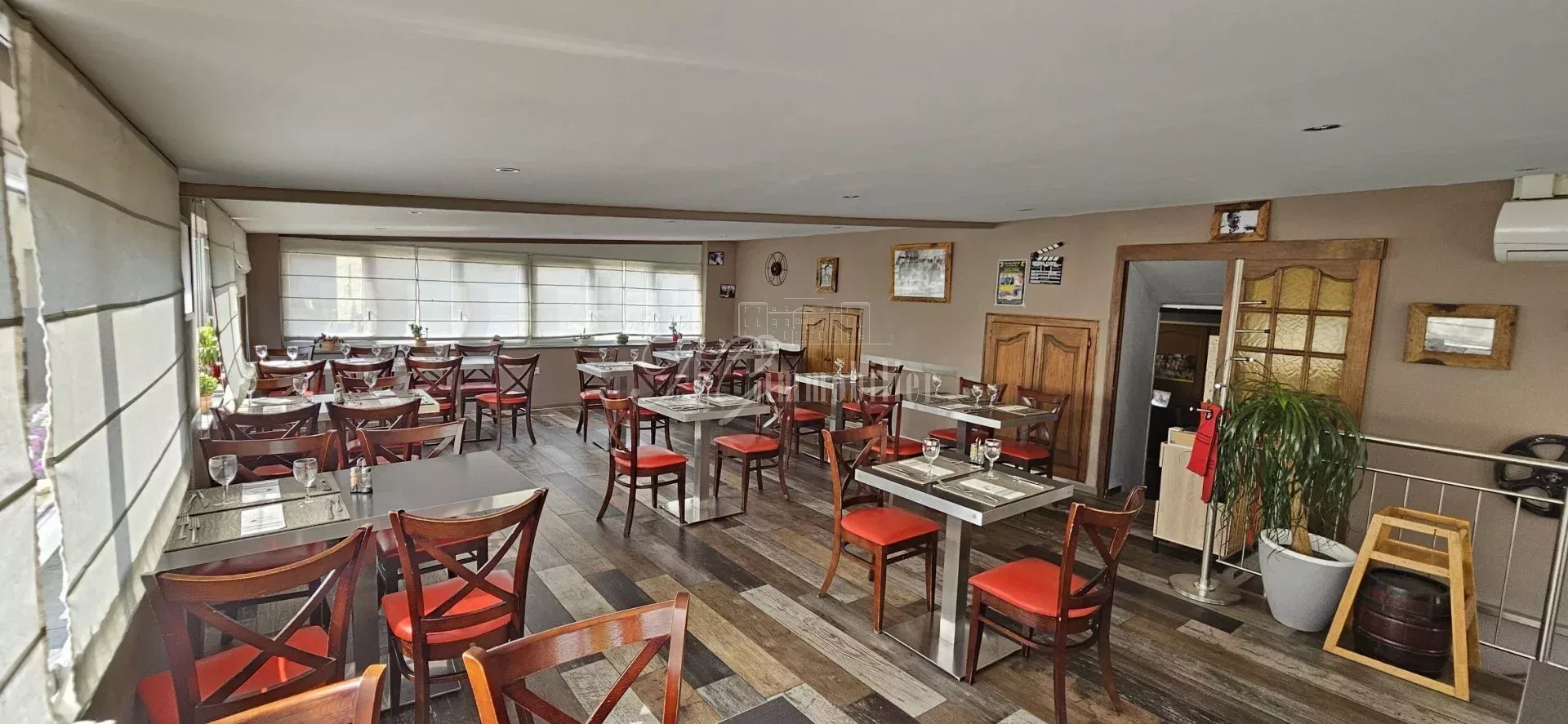 Multiples possibilités avec salle de banquet, salle de restauration, terrasse, bar libre de toute brasserie, cave à vin, et 2 appartements (un est loué et l'autre peut soit être re-loué, soit servir d'appartement de fonction).