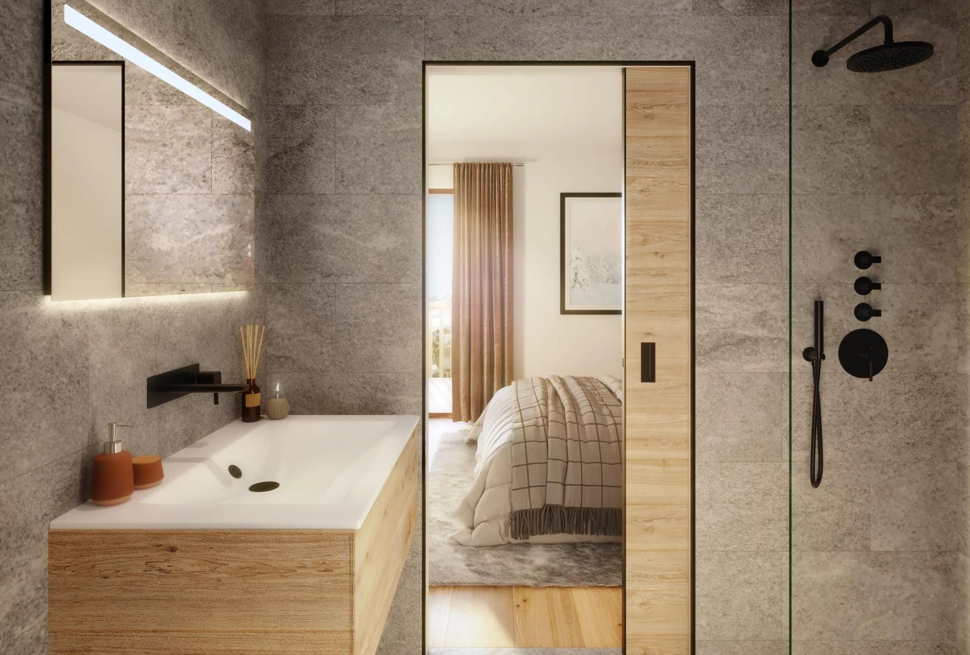 La résidence propose une sélection d’appartements allant du T1 au T5, tous conçus pour privilégier le confort, la luminosité et la qualité des espaces de vie. De larges balcons ou terrasses prolongent les pièces principales et permettent de profiter pleinement d’une vue panoramique de Morzine et Avoriaz.