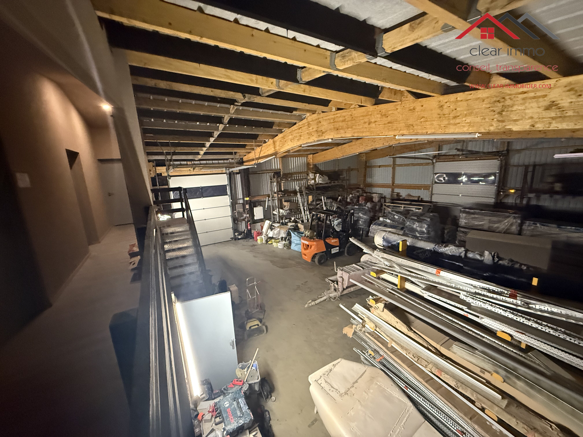 300 m2 de dépôt / atelier avec une hauteur sous plafond de 5,60 m, équipé de sanitaires avec douche