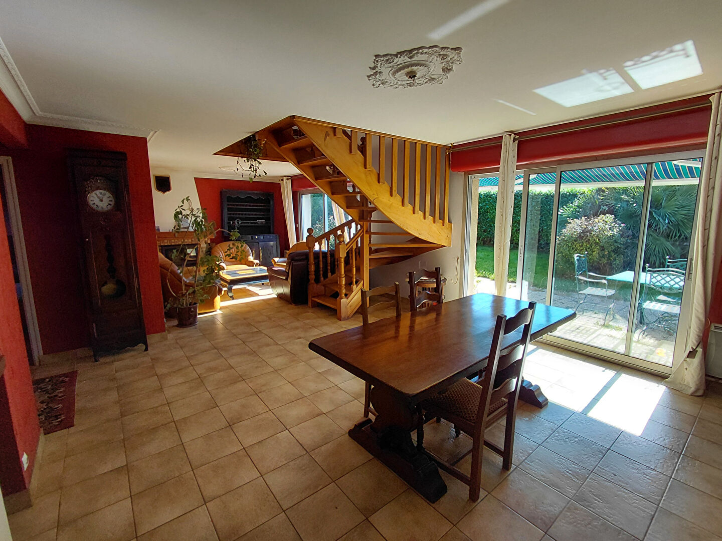 A VENDRE : située dans un quartier calme et recherché, maison habitable de plain pied de 1985 comprenant un hall d'entrée avec placard, une belle pièce de vie avec insert donnant sur une terrasse exposée sud, une cuisine ouverte aménagée, une chambre avec espace douche, un WC. L'étage se compose d'une mezzanine, trois chambres, un bureau. Garage attenant et jardin clos de 545 m2. (6.32 % honoraires TTC à la charge de l'acquéreur.)