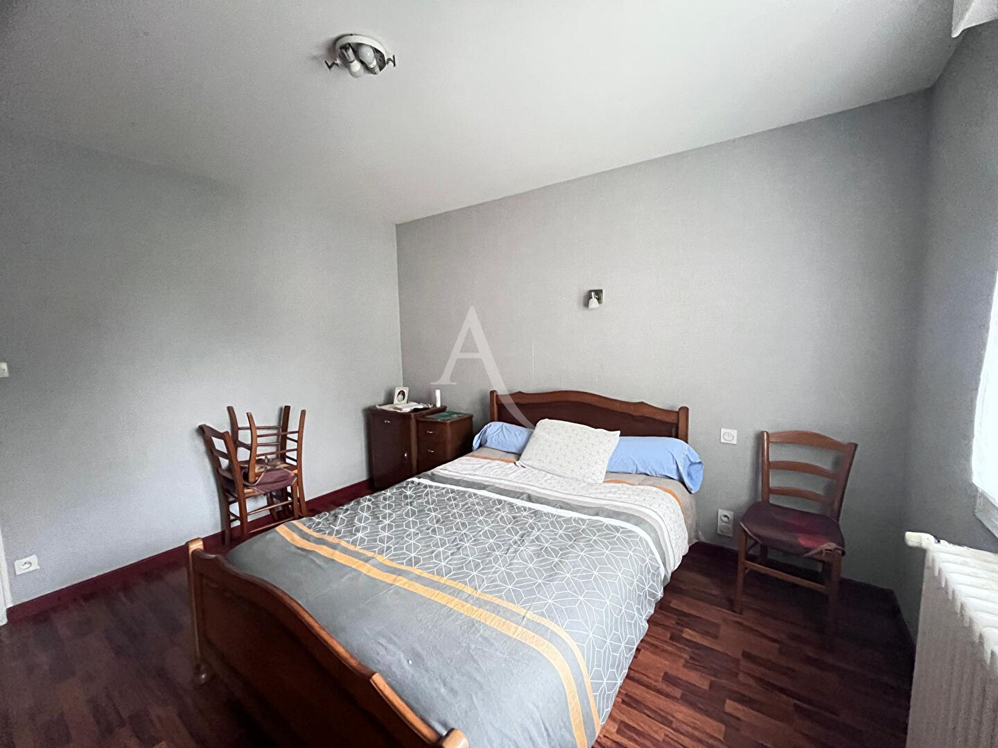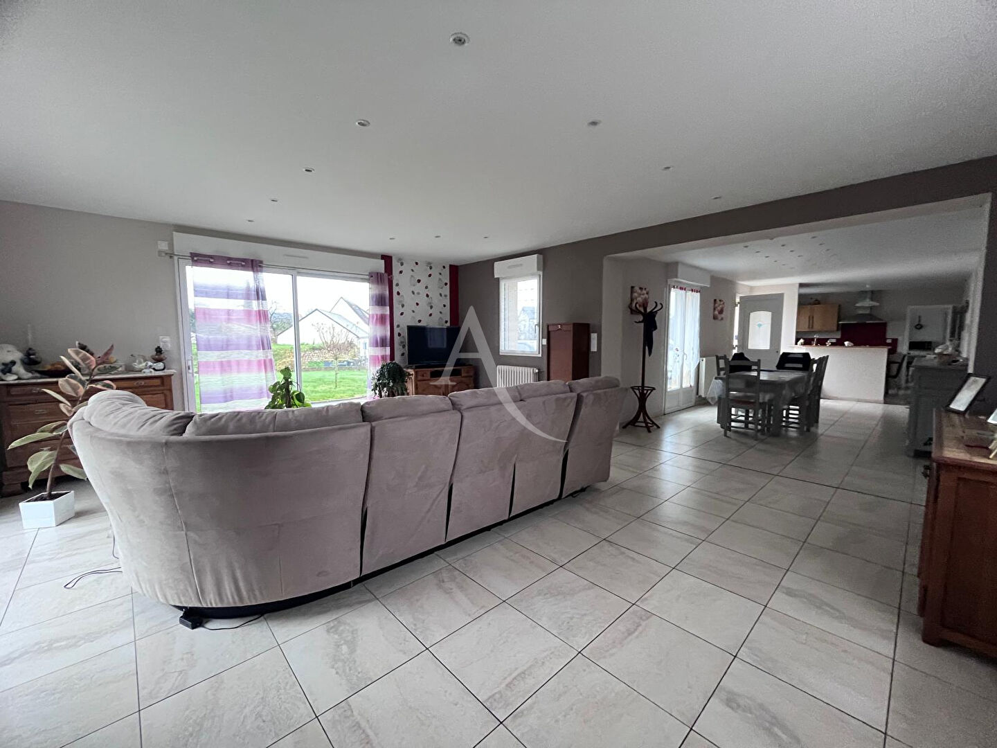 L'agence L'Adresse vous propose cette agréable maison de plain-pied intégral, très bien entretenue, implantée sur une parcelle d'environ 1800 m², idéalement située à Châlons-du-Maine, une commune paisible et recherchée, à seulement 15 minutes de Laval. Dès l'entrée, vous découvrirez une pièce de vie lumineuse, exposée sud-ouest, comprenant un salon/séjour ouvert sur une cuisine Lavaleur aménagée et équipée. L'ensemble offre un accès direct à la terrasse, idéal pour profiter des extérieurs. L'espace nuit se compose de deux chambres, d'une salle de bains équipée d'une douche à l'italienne, ainsi que d'un WC indépendant. Une quatrième pièce est également possible selon vos besoins (bureau, dressing, chambre supplémentaire?). En complément, vous bénéficierez d'un garage motorisé permettant de stationner deux véhicules, avec un grenier au-dessus pour du stockage. La maison dispose par ailleurs d'une isolation par l'extérieur, du double vitrage PVC/alu, et d'une chaudière fioul de 2013. Reliée au tout-à-l'égout, elle offre un confort de vie rare et un entretien irréprochable. Le tout est entouré d'un jardin clos et agréable, entièrement aménagé, avec une cour en enrobé, le tout parfaitement entretenu, idéal pour profiter des beaux jours. Vous apprécierez la qualité de construction et le soin apporté à l'entretien de cette maison, prête à accueillir ses nouveaux propriétaires. DPE: D (202) GES: D (46) REF : 36613-AG Honoraires à charge du vendeur. Les informations sur les risques auxquels ce bien est exposé sont disponibles sur le site Géorisques : www.georisques.gouv.fr