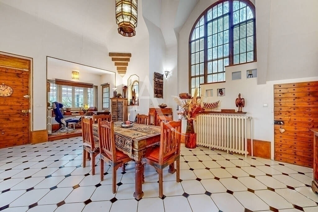 Demeure de charme - Maison de caractère - Bien rare à la vente A Esbly, dans un environnement calme et verdoyant, découvrez cette demeure de prestige au caractère unique, développant 256 m² habitables, implantée sur un magnifique parc arboré de 2 631 m². Cette propriété séduit par son architecture remarquable, ses volumes généreux, sa luminosité et l'atmosphère chaleureuse qui s'en dégage, mêlant authenticité et confort. Des volumes élégants et une distribution idéale. Au rez-de-chaussée : - un séjour lumineux aux beaux volumes, - un salon chaleureux, - un bureau, idéal pour le télétravail, - un dressing, - une cuisine aménagée et équipée, - un WC indépendant. Au 1er étage : - 3 chambres, dont une suite avec salle d'eau et WC, - une salle de bains avec WC. Au sous-sol : - une salle de détente, - une cave, - une pièce supplémentaire (salle de sport, loisirs, stockage?), - une véranda, - une chaufferie avec buanderie, - un WC. Un extérieur rare et privilégié Le parc paysager, véritable écrin de verdure, offre intimité et sérénité. Vous profiterez également d'une terrasse de 20 m², idéale pour recevoir, ainsi que 2 garages. Les atouts - Demeure de caractère - Surface habitable généreuse - Parc arboré de plus de 2 600 m² - Sous-sol aménagé - Environnement recherché - Bien rare sur le secteur d'Esbly à moins de 10 mn à pieds de la gare. Une propriété d'exception, destinée aux amateurs de belles demeures, à proximité des commodités, des transports et des axes principaux. Sonia POISSON (EI) Agent Commercial - Numéro RSAC : - .
