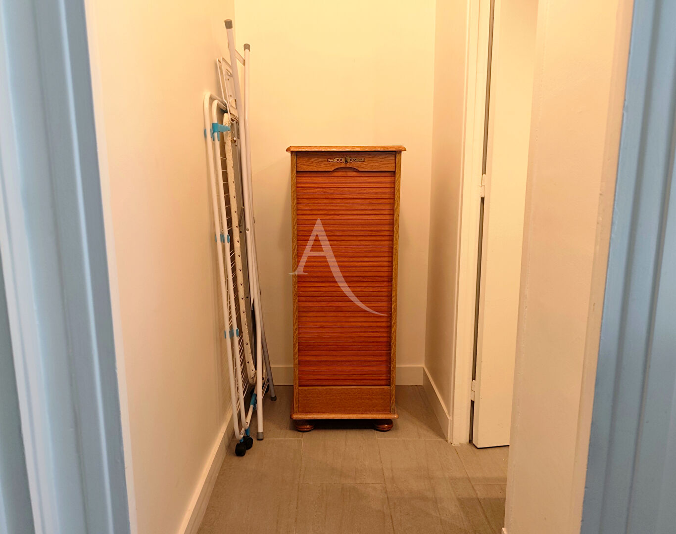 L'Adresse Nation vous propose ce grand studio meublé, situé au pied du métro Marx Dormoy (ligne 12) au 34 rue de Torcy, à deux pas du marché de la Chapelle. Situé au 2ème étage d'une résidence avec gardien, ce logement meublé et très bien équipé, a bénéficié d'une rénovation particulièrement soignée. Il comprend une entrée avec de grands placards qui dessert une belle pièce à vivre, une cuisine aménagée et équipée (palques, hotte, lave-linge, frigo-congélateur...) et une salle d'eau avec WC. La pièce principale bénéficie d'une lit-armoire électrique, qui une fois remonté, laisse un bel espace de vie. Les charges comprennent l'eau (froide et chaude) et le chauffage, en collectif dans la copropriété. Ce bien est disponible dès à présent à l'appui d'un solide dossier de solvabilité.