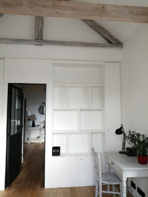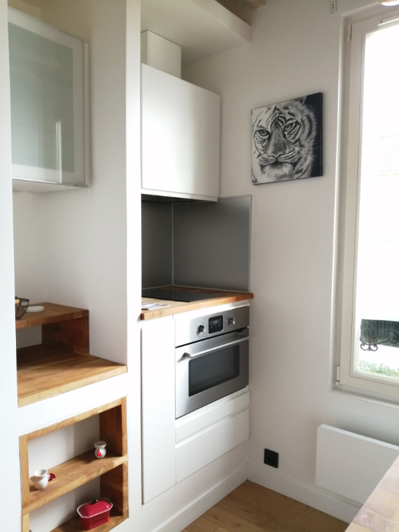 SAINT-GERMAIN-EN-LAYE, Quartier Bergette, A LOUER Superbe Appartement de type Studio Meublé, de 28.37 m² dans une maison individuelle (équivalence au 1er étage). Il dessert deux parties distinctes: une cuisine américaine équipée avec coin dinatoire et une partie nuit avec de nombreux rangements. Salle de douche et toilette indépendant. Environnement calme et verdoyant, proche du RER (12min à pieds). Une visite s'impose!