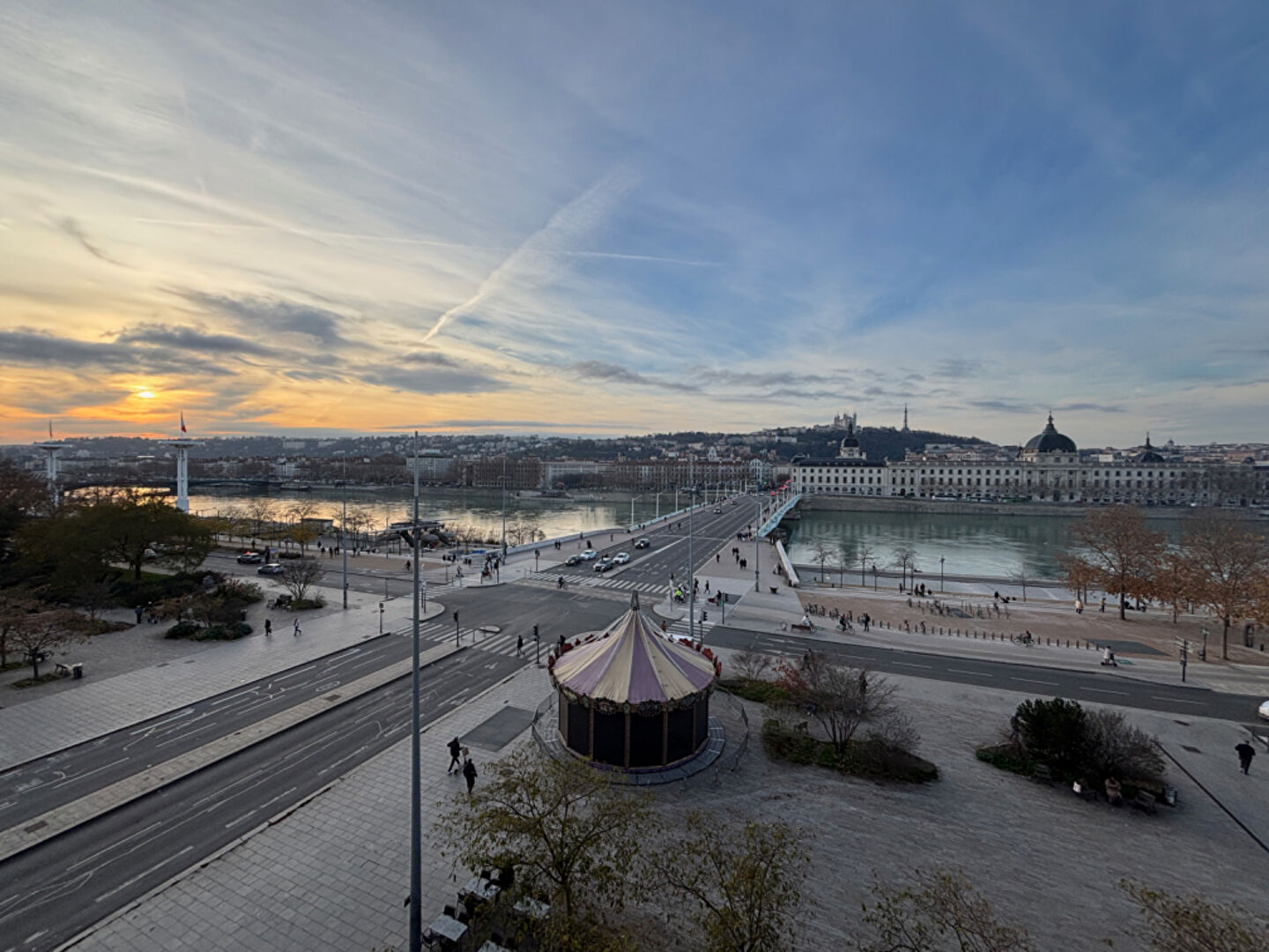 Dans un bel immeuble ancien situé sur les quais du Rhône, face à la place Bellecour, découvrez ce 2 pièces de 59 m² au sol dont 57,34 m² de surface habitable au 4? étage avec ascenseur. L'entrée distribue l'ensemble des pièces : - Une spacieuse pièce de vie avec alcôves, exposée plein ouest, offrant une vue imprenable sur le Rhône, l'Hôtel-Dieu et la basilique de Fourvière - Une chambre tout en longueur bénéficiant de la même vue dégagée, - Une cuisine indépendante, généreuse en volume, aménagée et dotée de nombreux rangements - Une salle de bain équipée d'une cabine de douche moderne, - Des WC séparés situés dans l'entrée. L'appartement est lumineux, dispose de nombreux espaces de rangement et a été rafraîchi récemment, tout en conservant le charme de l'ancien. Chauffage et eau chaude : électrique Disponible immédiatement Merci de nous contacter par message via l'annonce si ce bien vous intéresse. Vous recevrez alors par retour le dossier complet de cet appartement ainsi qu'un formulaire à nous renvoyer si vous souhaitez déposer votre candidature. Dans un soucis de protection de vos données personnelles, aucun dossier de candidature ne vous sera demandé avant que vous ayez visité l'appartement. Enfin, si l'annonce est ligne c'est que l'appartement est toujours disponible. Antoine DE LA CHAPELLE? Smart Immo? 07 67 88 41 69