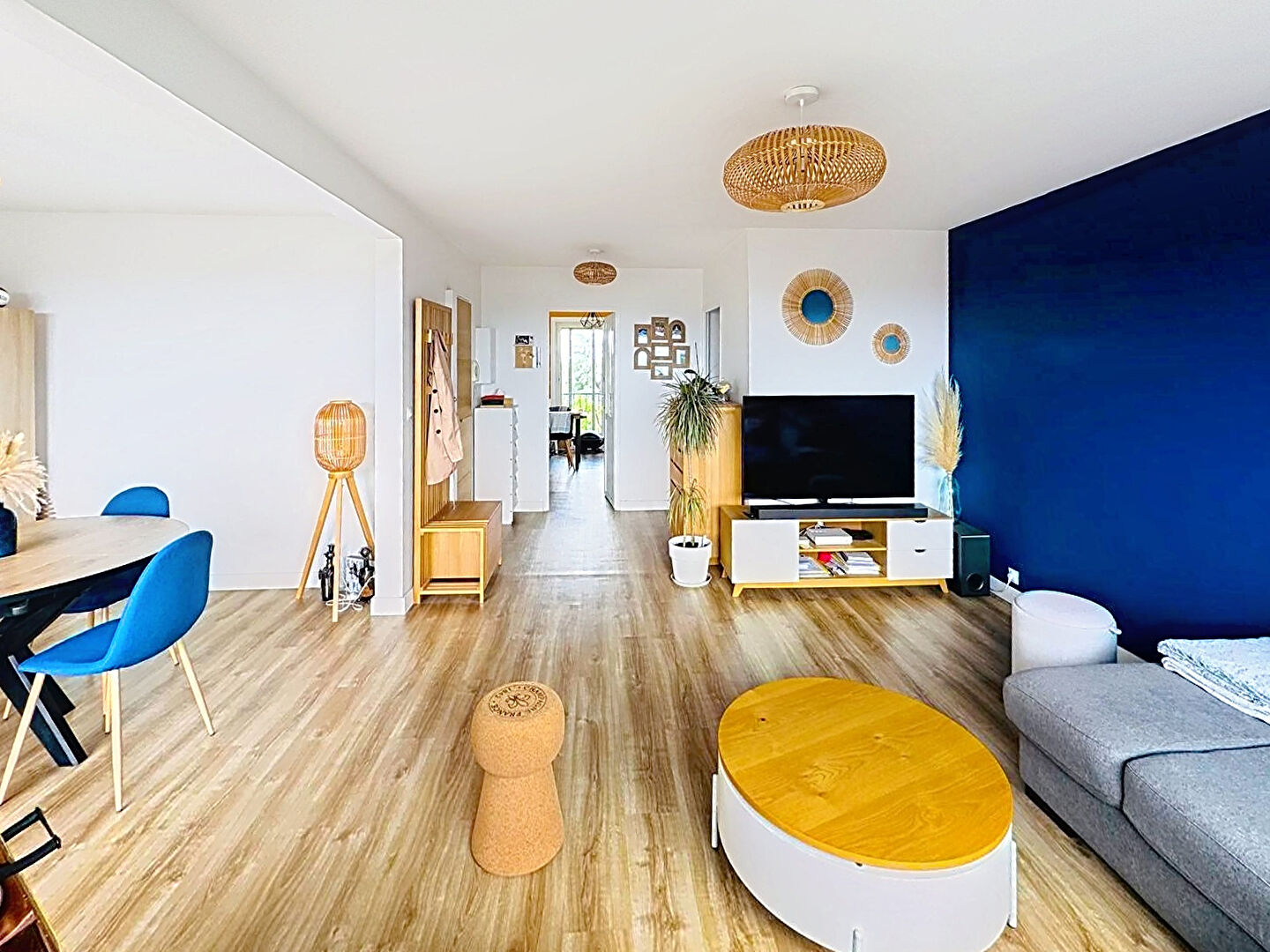 En exclusivité à Saint PRIEST 69800 l'agence immobilière BMI COTRIMO vous propose en dernier étage un agréable et lumineux appartement T4 transformé en T3 d'une surface de 79m² habitables entièrement rénové et mis aux goûts du jour avec garage dans une résidence très recherchée le tout au calme et à deux pas du village des commerces du tram. Traversant Est/Ouest, cet appartement vous offre un grand séjour de 32m² ouvrant sur un balcon/terrasse de 5m² (store banne) avec une vue magnifique sur Lyon sans vis-à-vis, une cuisine indépendante aménagée et équipée ouvrant sur un balcon avec vue dégagée sur les Alpes. Partie nuit avec un couloir doté d'un grand placard mural et distribuant 2 chambres de 11m² et 13m² environ, un dressing, salle d'eau (refaite) wc séparés. 1 garage et une cave complètent ce bien. Toutes les fenêtres ont été changées. Copropriété de 406 lots dont 134 lots d'habitation. Pas de procédure en cours. Provision sur charges mensuelles : 250 euros/mois incluant l'entretien des parties communes et de l'ascenseur, eau chaude et eau froide, chauffage (via chaudière collective gaz de ville) et le fonds Alur travaux. La chaudière collective de l'immeuble vient d'être changée. Taxe foncière 2025 : 1201 euros. DPE en D avec 216kwh/m²/an Emissions gaz effet de serre en D avec 43kg CO2/m²/an Montant estimé des dépenses annuelles d'énergie pour un usage standard : entre 1300 euros/an et 1790 euros par an selon les prix moyen des énergies indexés sur les années 2021,2022 et 2023. N°ADEME 2569E2807481W Honoraires d'agence à charge vendeurs. Les informations sur les risques auxquels ce bien est exposé sont disponibles sur le site Géorisques : www.georisques.gouv.fr Carte Professionnelle CPI 69012018000032857 CCI Lyon Métropole Copropriété de 406 lots - dont 134 lots habitation. Charges annuelles : 2760 euros.
