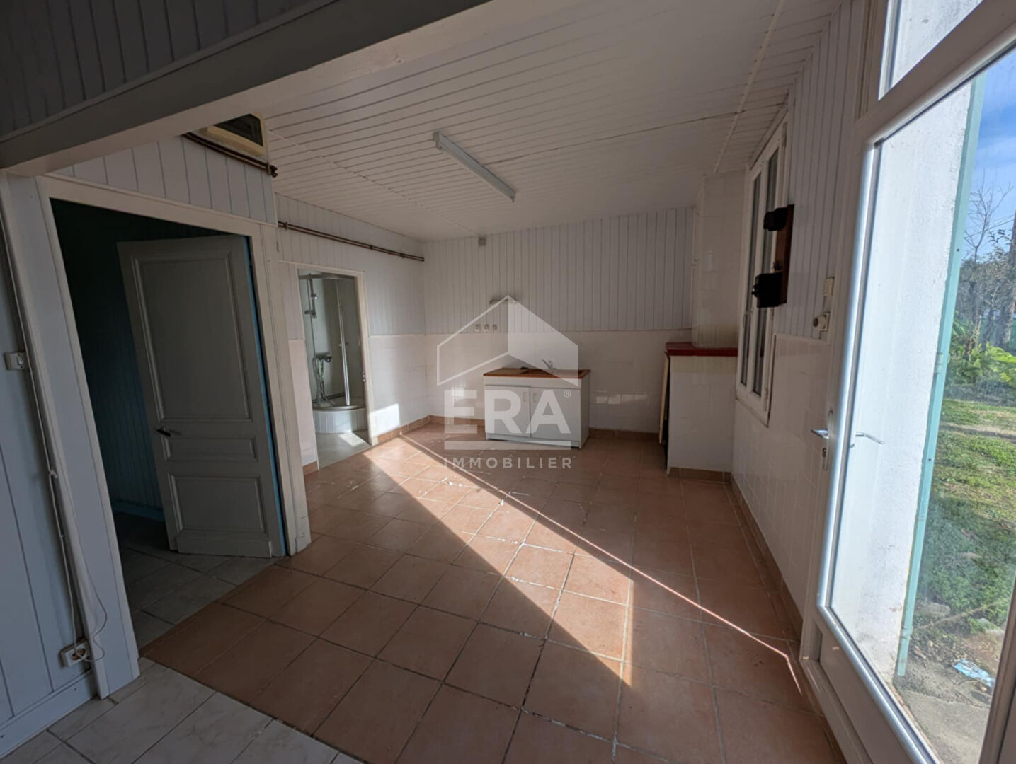 Maison à vendre de plain pied au centre de Montpon et proches gare, autoroute, école, commerces à pied. Idéal investisseur ce bien peut se diviser en deux et donner deux loyers (rentabilité 1300 euros) . Deux cotés bien distinct séparé par un garage. Le premier: Salon avec évier, chambre, salle d'eau avec WC Le deuxième: Salon, salon-cuisine, chambre, salle d'eau avec WC. Garage de 18,7 m² entre les deux appartements pouvant être aménagée. Dépendance (atelier) de 30 m², appentis, terrasse couverte, abri de jardin. Double vitrage PVC, tout à l'égout, chaudière gaz récente, toiture refaite il y a 10 ans. Travaux à prévoir. Le tout sur un terrain clos et arboré de 804 m². (6.82 % honoraires TTC à la charge de l'acquéreur.) Christophe DIEU (EI) Agent Commercial - Numéro RSAC : 878607902 - Perigueux.