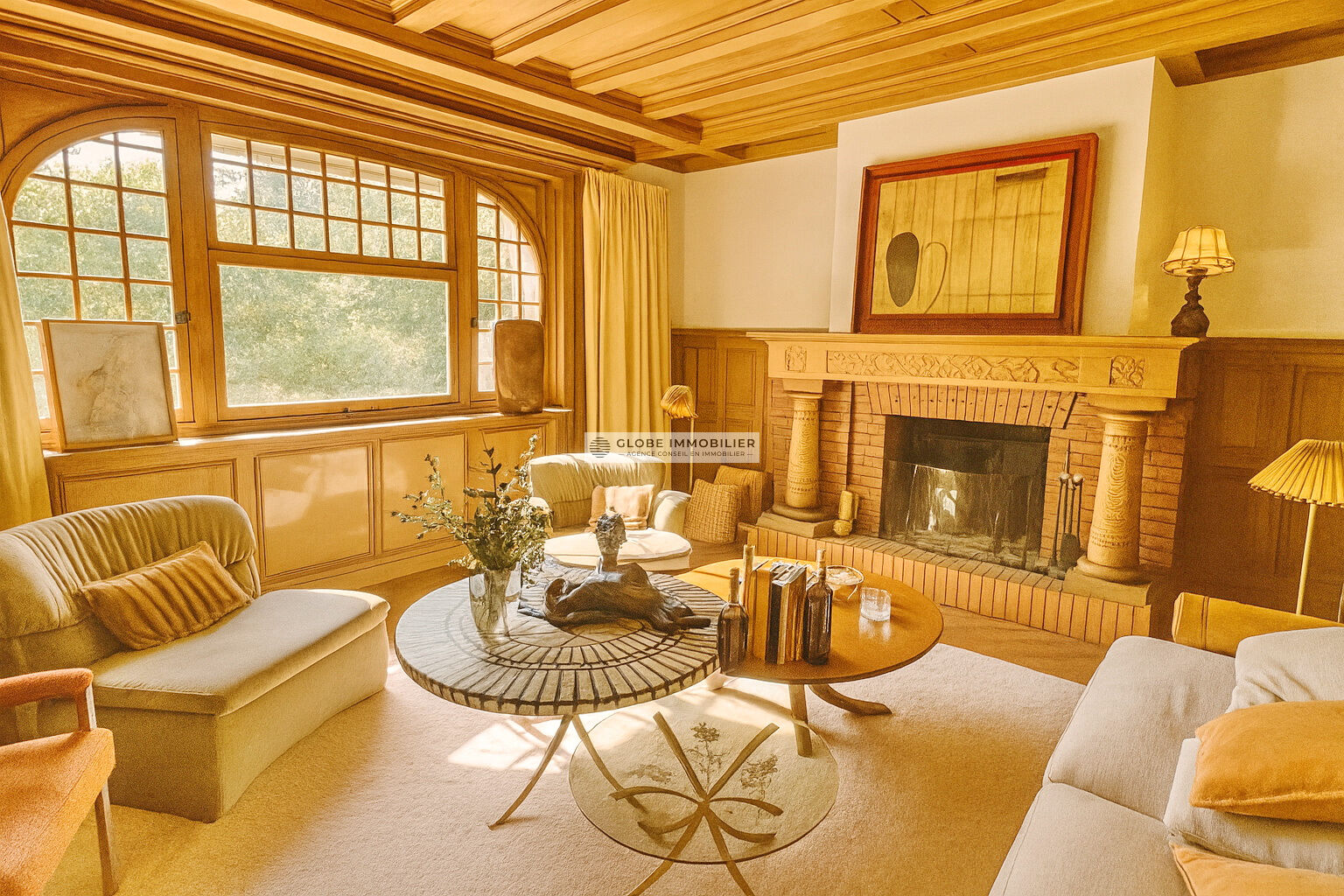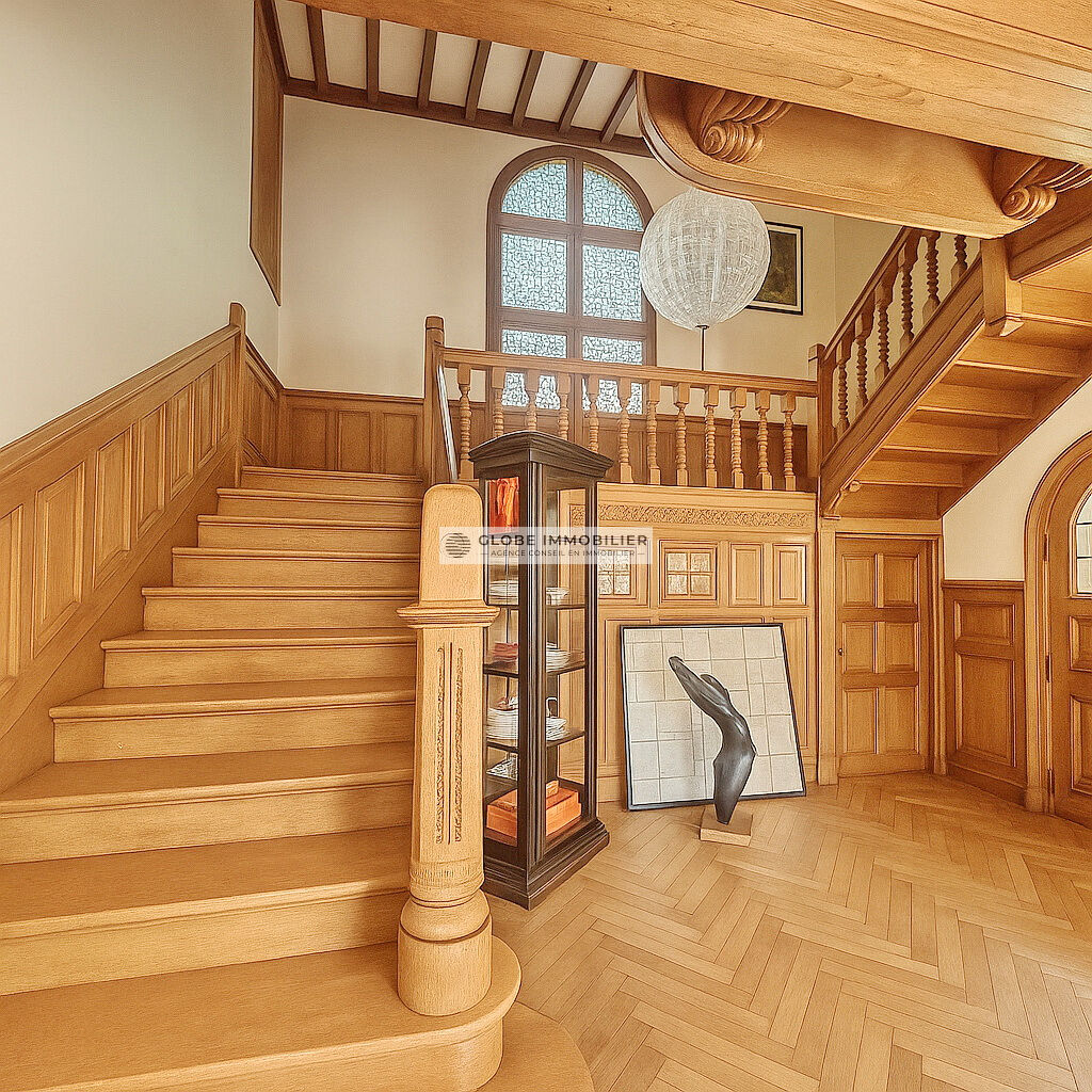 Au coeur du quartier résidentiel du Parc d'Hiver, cette demeure d'exception de 350 m², signée de l'architecte Godbarge en 1926, a été entièrement rénovée avec un soin extrême, dans le respect absolu de son authenticité et de ses éléments d'origine, tout en lui conférant un confort contemporain et une élégance intemporelle. Édifiée sur une parcelle paysagée d'environ 1 500 m², au calme, la maison développe environ 350 m² habitables. Le porche d'entrée s'ouvre sur un vaste double salon avec cheminée, orné de boiseries raffinées, d'un bow-window, d'un bureau/bibliothèque et de parquets anciens. Le rez-de-chaussée comprend également des toilettes invités et une grande cuisine familiale donnant sur une terrasse extérieure. Un escalier en chêne clair, sublimé par un vitrail signé Mauméjean, conduit à l'étage : une chambre de maître avec cheminée, une rare salle de bains d'origine Ruhlmann, deux autres chambres partageant une salle d'eau, ainsi que des toilettes indépendantes. Le sous-sol accueille un vaste dressing, une cave à vin climatisée, une lingerie, plusieurs pièces de rangement, une salle d'eau et la chaufferie. Accessible depuis l'intérieur comme depuis l'extérieur, une grande chambre d'amis avec salle d'eau en marbre, agrémentée d'un second vitrail Mauméjean, offre un espace d'hôtes idéal. Un studio indépendant, à proximité de la cuisine, complète l'ensemble, avec douche, kitchenette et WC. Le jardin paysagé pourra aisément accueillir une piscine. Un double garage vient parfaire ce bien d'exception. Une propriété rare, alliant patrimoine architectural, élégance et sérénité, dans l'un des quartiers les plus prisés de Biarritz. Mr Olivier BRÉGEON TEL : 06 11 66 76 44 Carte CPI64012018000034399 (3.17 % honoraires TTC à la charge de l'acquéreur.)