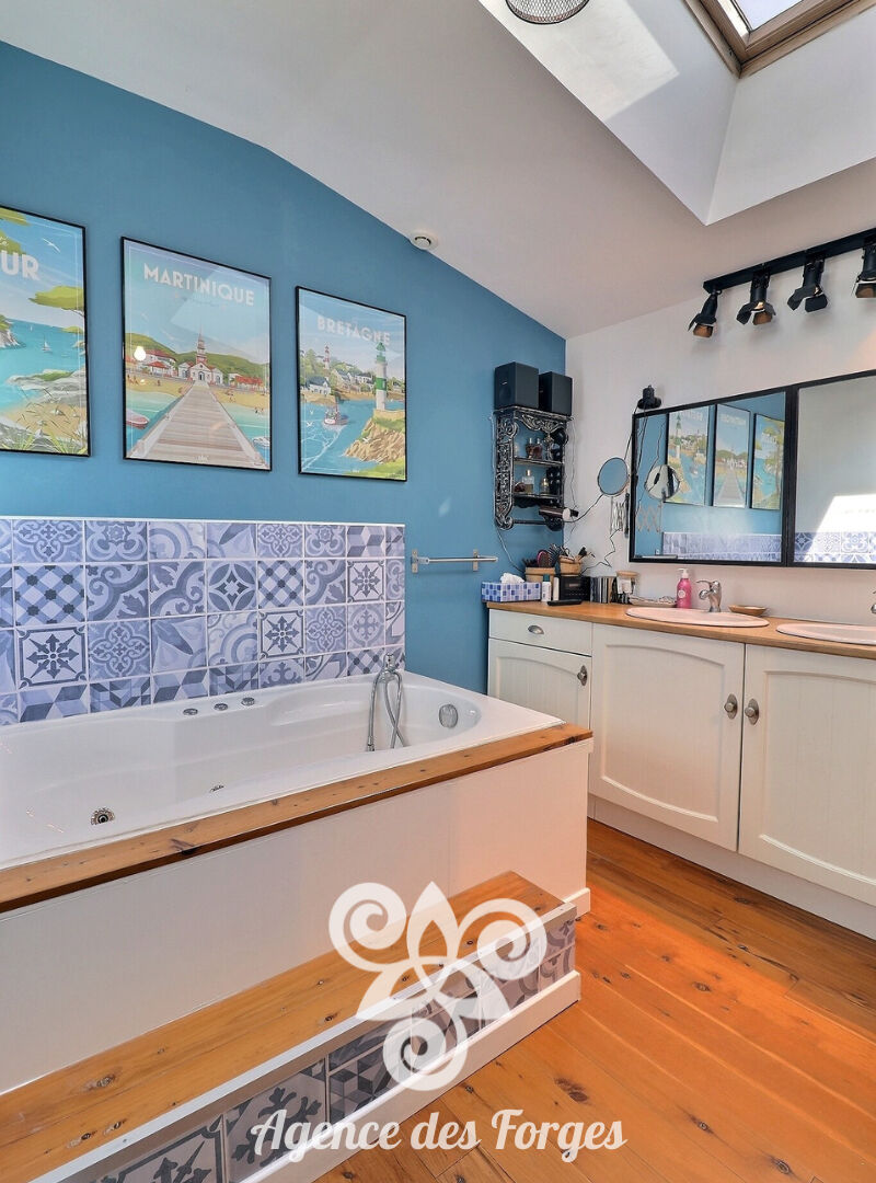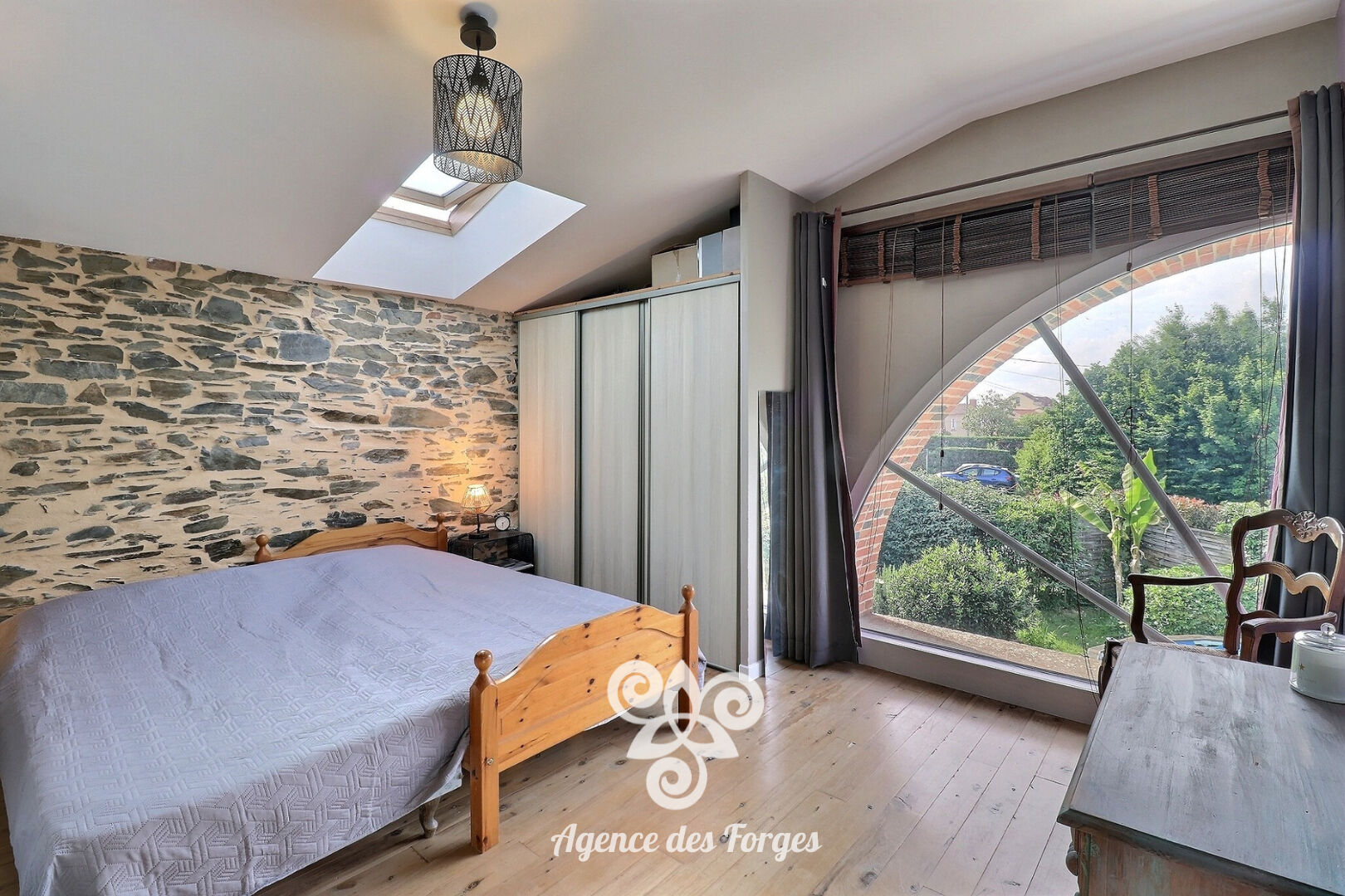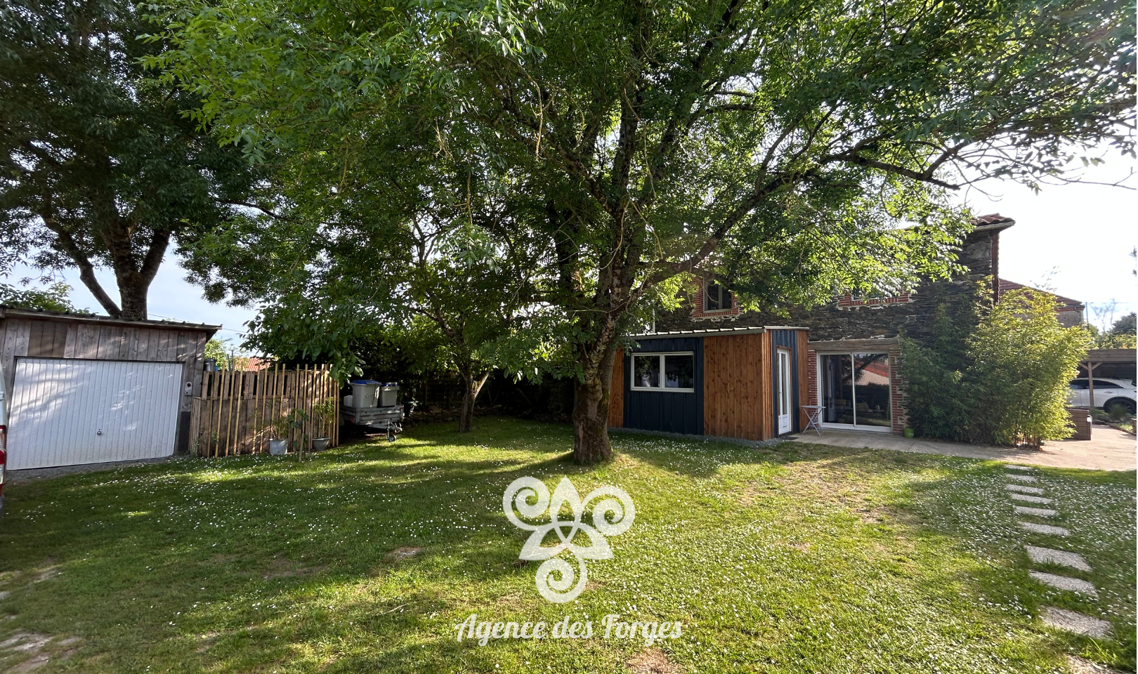 Nouveauté à l'Agence des Forges !! Située dans le bourg de Gesté, grange en pierre d'environ 178m² avec beaucoup de charme et parfaitement rénovée en 2005, offrant au rez de chaussée : une pièce de vie spacieuse et lumineuse d'environ 62m² avec pierres apparentes et double baie vitrée - une cuisine aménagée et équipée (four, plaques, hotte) d'environ 17m² - un grand bureau (pouvant faire office de chambre) - un dégagement - un WC indépendant avec lave mains - un espace buanderie donnant accès à un grand atelier et un bureau. A l'étage : trois chambres - une salle de bains avec baignoire, douche, double vasque et sèche serviettes - un wc indépendant. A l'extérieur : 806m² de terrain - double garage - carport - un second garage attenant à la maison - piscine hors sol. Chauffage fioul - Ouvrants alu et pvc double vitrage -Volets roulants électriques et manuels - Fibre - Tout à l'égout - 1065 euros de taxe foncière. (3.39 % honoraires TTC à la charge de l'acquéreur.)