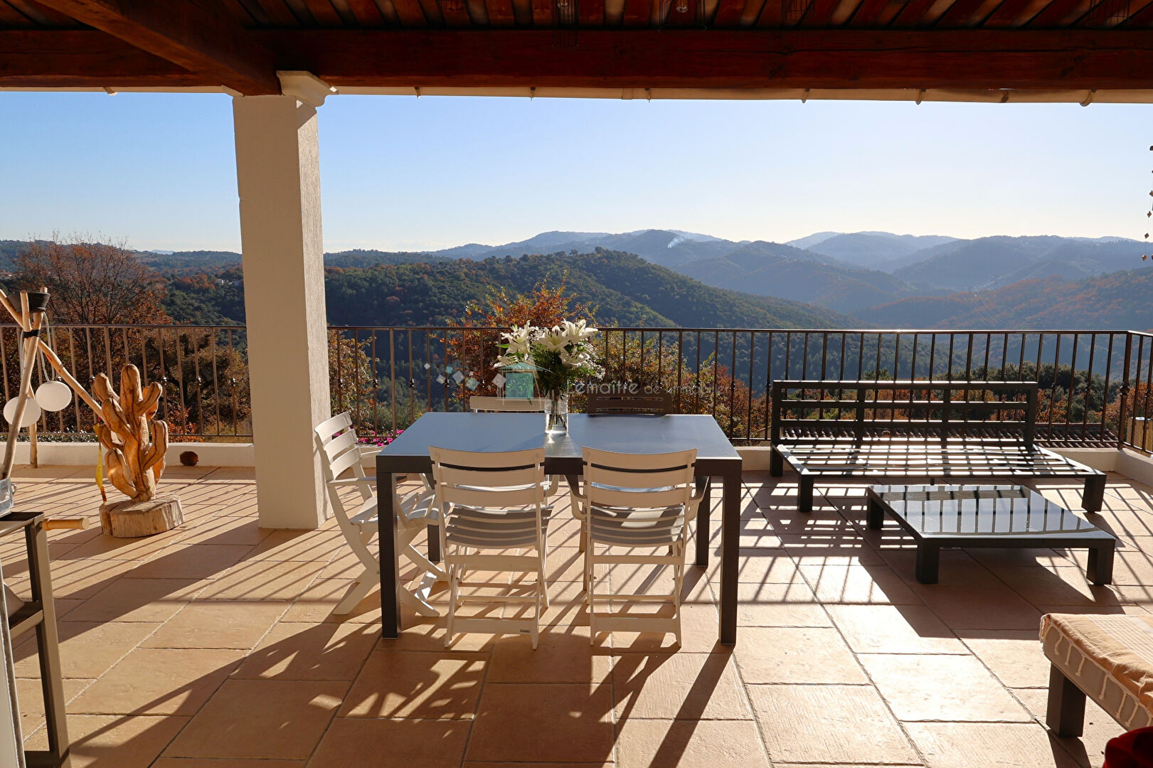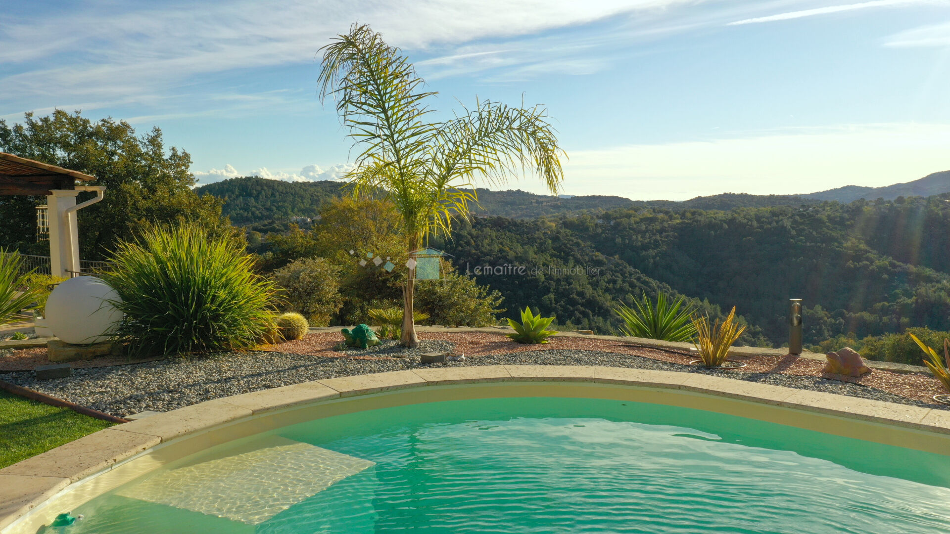 * EXCLUSIVITÉ LE TIGNET * Située sur les Hauteurs du Tignet au calme absolu, belle villa de 130 m² édifiée sur un terrain de 1500 m² offrant une superbe vue dégagée. Elle se compose: grande entrée, d'une cuisine moderne équipée et aménagée, séjour lumineux avec grande baie vitrée en galandage donnant accès à une terrasse couverte, salon cathédrale et son poêle a bois. Espace nuit: une suite parentale de plain pied avec dressing et salle d'eau, un wc. A l'étage: 2 chambres, une salle de bain, un wc, coin bureau. Magnifique espace piscine avec douche solaire, sous sol de 25 m², abri de jardin. Assainissement : fosse septique aux normes Chauffage au sol par pompe à chaleur et climatisations réversibles.. A découvrir sans tarder ! (3.57 % honoraires TTC à la charge de l'acquéreur.)