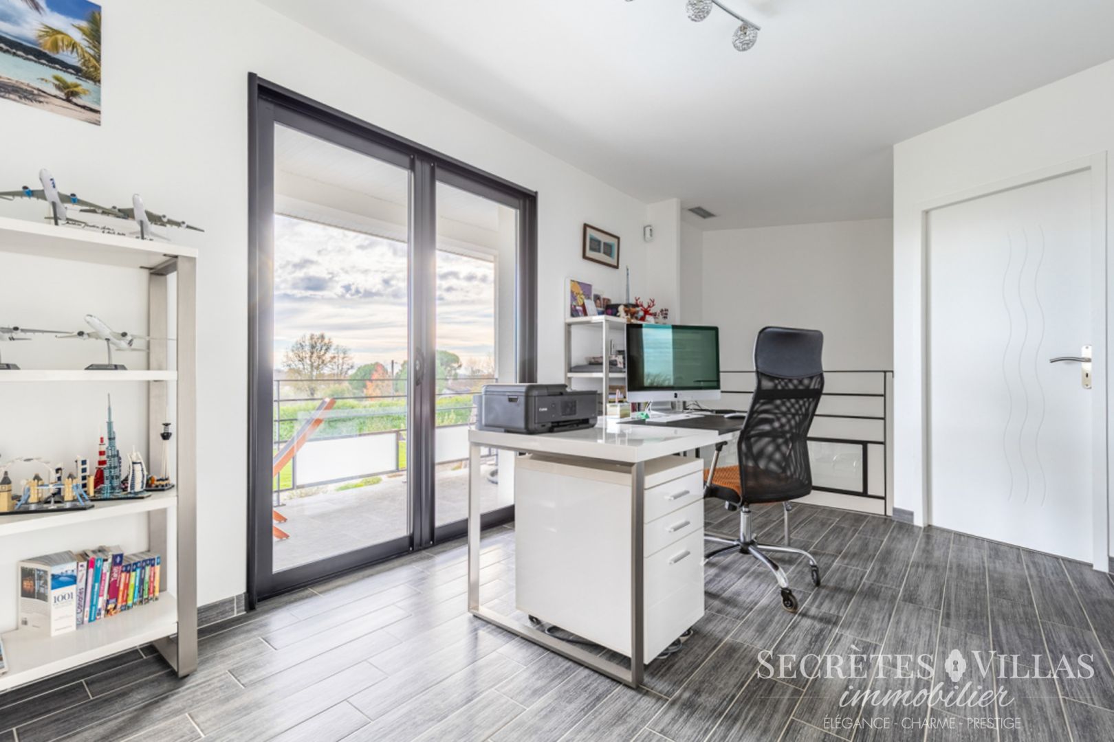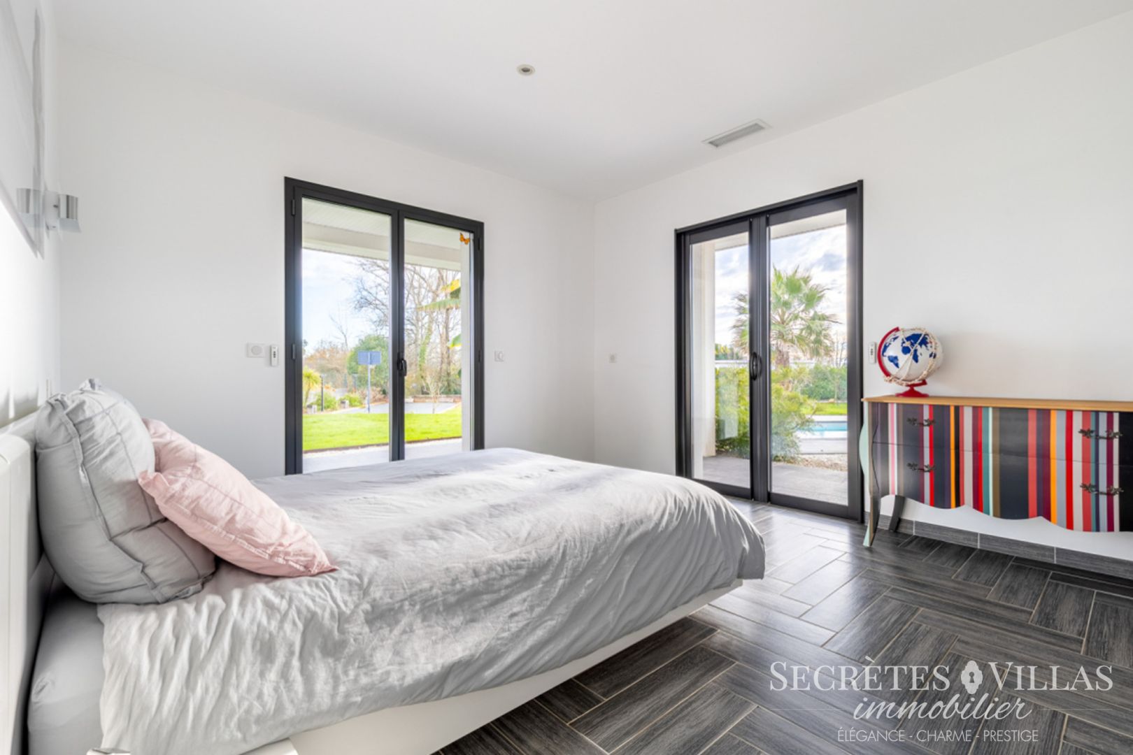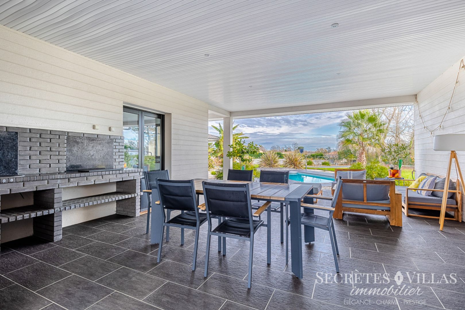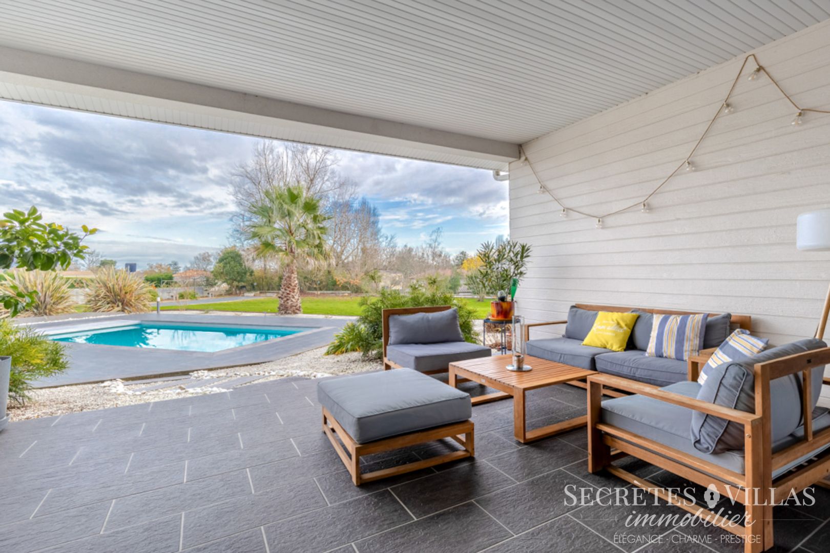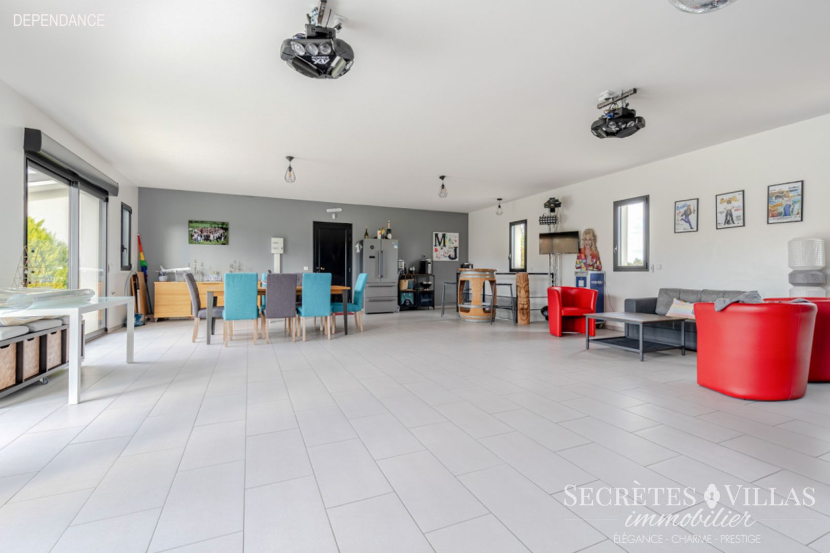 BOULIAC. Découvrez cette magnifique villa contemporaine de 280 m2 nichée dans un secteur verdoyant et recherché , à la limite de Bouliac. Un véritable havre de paix, offrant un cadre de vie privilégié et ultra-calme, sans aucun vis-à-vis. LES ATOUTS MAJEURS: Emplacement Stratégique : Au calme absolu, à seulement 3 min des commerces, et idéalement situé pour l'accès aux écoles (maternelle et primaire) et au réputé collège privé Lestonnac (accessible à pied ou à vélo). Bordeaux Saint-Jean et le centre sont à 15 minutes, et l'aéroport à 25 minutes. Volumes Exceptionnels : Un vaste espace de réception traversant de 76 m2 baigné de lumière, ouvert sur une superbe terrasse, avec superbe cuisine équipée et îlot central. Confort de Plain-Pied : Le rez-de-chaussée propose une suite parentale complète (dressing, SDB, WC) et une seconde chambre avec SDE/WC, garantissant un confort de vie optimal. Espace Mezzanine et Balcon : L'étage distribue un espace bureau/mezzanine avec un balcon offrant une vue imprenable sur la piscine et le jardin, ainsi que deux chambres supplémentaires, une SDE et un WC. LES PRESTATIONS HAUT DE GAMME: Cette villa est équipée de technologies de pointe pour un confort maximal: Grande performance Énergétique : Chauffage au sol par pompe à chaleur, climatisation gainée réversible et panneaux solaires. Technologie et Sécurité : Domotique pilotable à distance, alarme, volets roulants centralisés et aspiration centralisée. GRAND TERRAIN 3700M2 entièrement clos et paysagé, véritable invitation à la détente et aux loisirs : Espace Piscine Luxueux : Piscine au sel, chauffée et sécurisée par un volet électrique immergé. Cuisine d'Été Équipée : Une magnifique terrasse couverte avec une cuisine d'été complète (barbecue, plancha, four à pizza), prolongeant l'espace de vie vers l'extérieur. Loisirs et Commodités : Boulodrome, nombreux emplacements de parking et abri. LE POTENTIEL UNIQUE DE L'ANNEXE: Un atout majeur : une annexe indépendante de 80 m2, chauffée et isolée, offrant un potentiel illimité : Studio indépendant pour locatif/amis. Salle de jeux, salle de sport, ou espace de réception. Espace professionnel ou bureau pour le télétravail. UN GRAND GARAGE DE 120 m2 (sous l'annexe) et le local technique de la piscine complètent ce bien. Tous ces éléments font de cette villa un bien facile et agréable à vivre, un Oasis de Calme Proche de Bordeaux !Les informations sur les risques auxquels ce bien est exposé sont disponibles sur le site Géorisque (3.11 % honoraires TTC à la charge de l'acquéreur.)