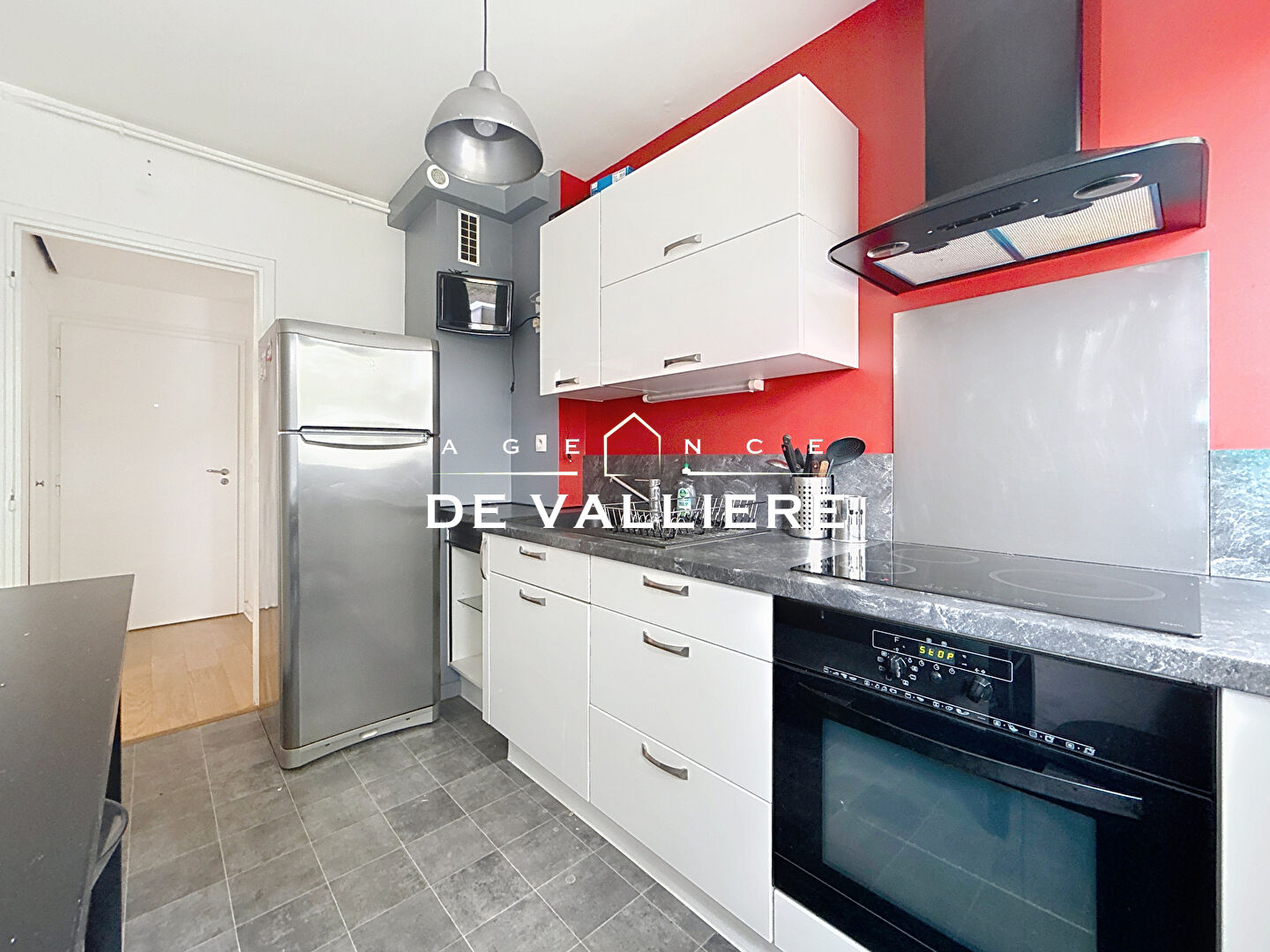Les Agences DE VALLIERE vous proposent en exclusivité, dans une résidence bien entretenue en retrait de la rue, un appartement de deux pièces principales, au calme et en bon état, comprenant une entrée avec placard, un séjour donnant sur espaces verts, une cuisine indépendante meublée, un dégagement donnant accès a une chambre et une salle de douche avec WC. Un balcon accessible depuis la cuisine. Une cave et un parking en sous-sol complètent ce bien. (5.96 % honoraires TTC à la charge de l'acquéreur.) Copropriété de 160 lots - dont 53 lots habitation. (Pas de procédure en cours). Charges annuelles : 1800 euros.