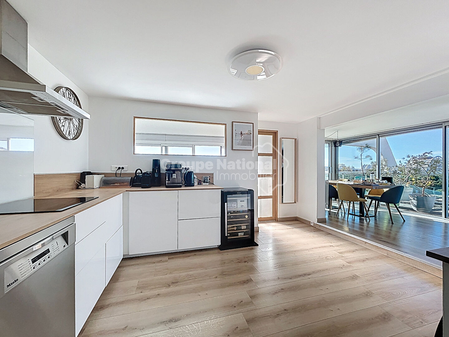 Nous avons le plaisir de vous présenter en exclusivité un magnifique appartement situé à la Grande Motte. A seulement 10 minutes à pied du port, proche des commodités, dans une résidence sécurisée au 5ème étage AVEC ASCENSEUR et accès à la piscine, l'appartement vous offre: 1. Un espace de vie salon-salle-à-manger de 25,55m2 irréprochable avec un niveau de finitions excellent ouvrant sur une très belle terrasse de 25m2 et sa petite vue mer au S. Les récentes baies vitrées en aluminium double vitrage de l'espace de vie vous permettent de bénéficier d'une vue totalement dégagée SO ce qui est un régal pour les yeux à chaque saison. Par ailleurs leurs qualité vous assurent un confort énergétique fort appréciable. La grande terrasse de 25 m2 munie des stores bans est un lieu de détente qui prolonge votre espace de vie de façon significative. La cuisine moderne, aménagée et totalement équipée ouverte sur le salon salle-à-manger vous déploie 15m2 d'espace supplémentaire. La chambre de 10,95m2 orientée plein Sud munie des grandes baies vitrée avec volet roulant électrique vous invite à profiter à chaque instant de votre bien. Une salle d'eau parfaitement optimisée et entièrement rénovée ainsi que des toilettes independants et une entrée avec un espace de rangement complètent le tout pour votre plus grand confort. La résidence est dans un excellent état, les parties communes intérieures comme extérieures sont parfaitement entretenues. L'appartement est entièrement CLIMATISÉ (chaud et froid), il dispose également des convecteurs électriques à inertie sur l'espace salon Charges de copropriété de 180 euros/mois comprennent: eau chaude, gestion des déchets, conciergerie, espaces communs, accès à la piscine, ascenseur Taxe foncière de 1100 euros. Consommation électrique annuelle environ 812 euros. Copropriété de 139 lots - dont 69 lots habitation. (Pas de procédure en cours). Charges annuelles : 2160 euros.