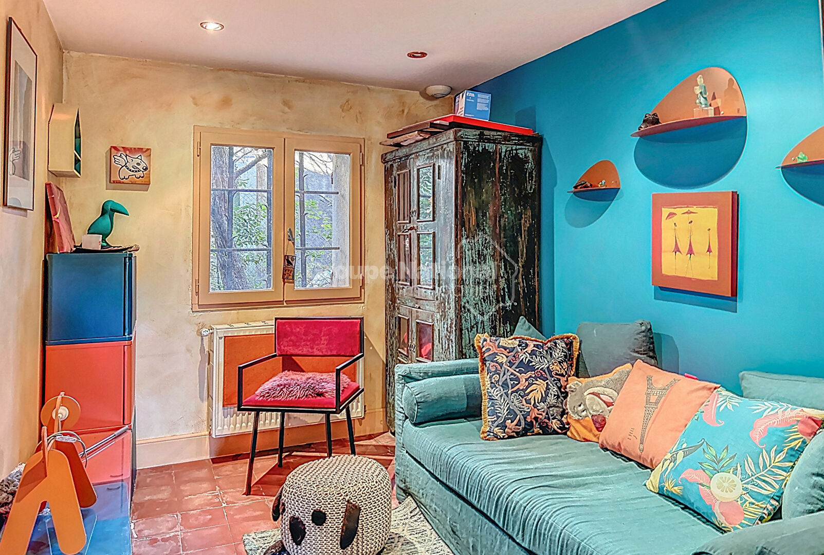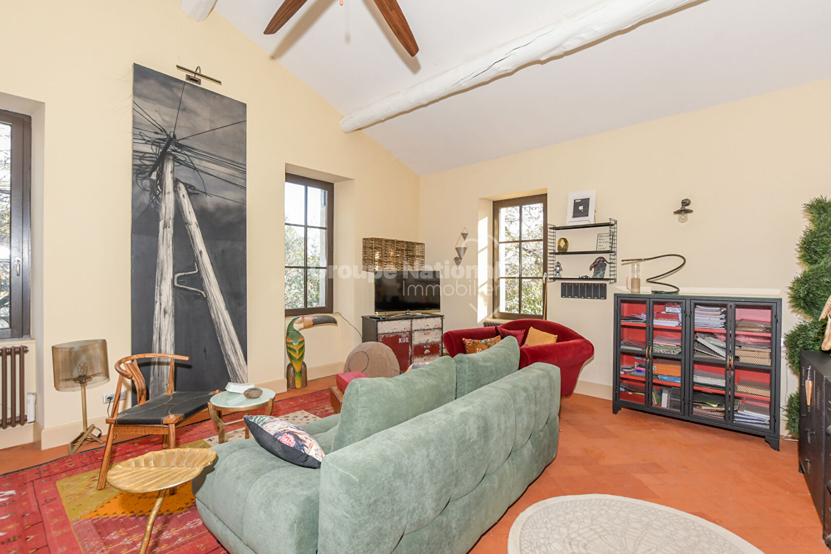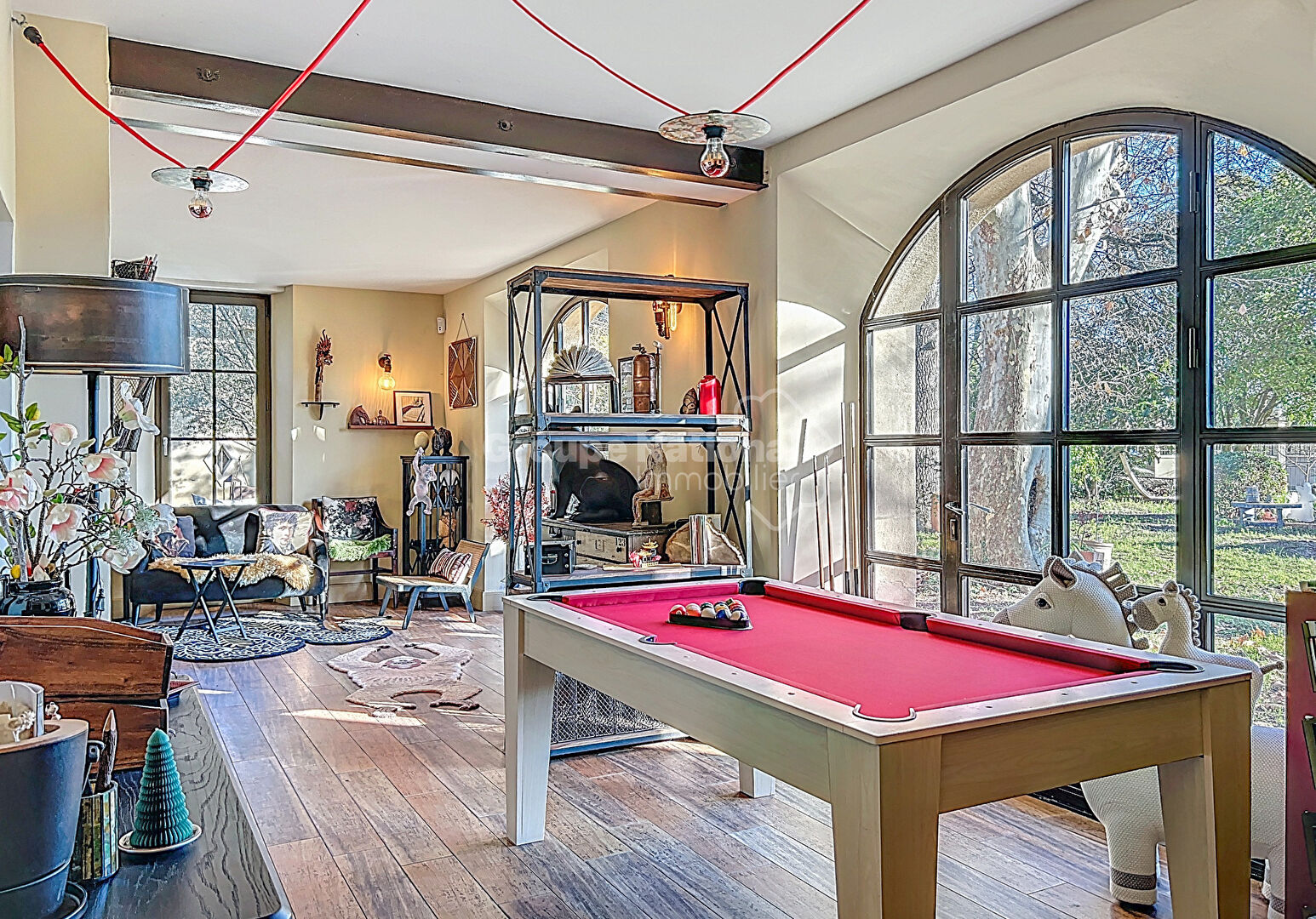 Majestueux Mas de ville entièrement restauré avec grand soin alliant de l'authenticité d'antan avec le confort moderne. 1Km du centre ville et 500m de la gare. Au calme absolu, au fond d'une impasse et au coeur d'un écrin de verdure, découvrez une demeure de caractère offrant un potentiel exceptionnel. Ce cocon rarissime propose un Mas de 1889 de 325m² avec de vastes espaces de vie en "labyrinthe intelligent" dont un splendide séjour exposé plein sud, des pièces et touches architecturales savamment réfléchies, 6 belles chambres ; mais aussi une belle maison indépendante en annexe de 120m² idéale pour recevoir, générer un revenu locatif ou pratiquer une activité libérale. Pas de vis à vis - les vues donnent sur les espaces verts tout autour de cette propriété enchanteuse. A l'extérieur, un terrain clos et arboré de plus d'1 hectare en partie laissé en nature ainsi que des espaces paysagés, en jardin, une belle fontaine, des zones ombragées, 140m² de dépendances dont une grange de 50m² transformée en bar d'été (avec douche et WC) et un sauna / salle de sport de 25m², une jolie petite piscine pour profiter du soleil provençal, 250m² de terrasses, parking plusieurs voitures, chauffage par géothermie. Avec son environnement calme et serein tout en restant à proximité immédiate des commodités, cet îlot de quiétude serait parfait pour une grande famille, une résidence secondaire ou un projet professionnel (chambres d'hôtes, gîte, activité bien-être) ou libérale (notaire, avocat, médecin,...). Amoureux de Provence, de l'authenticité, belles pierres et des touches décoratives inspirées, ce mas unique avec son "coup de coeur" inéluctable n'attend que vous - donc à visiter très rapidement !